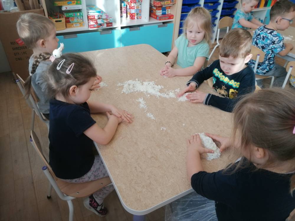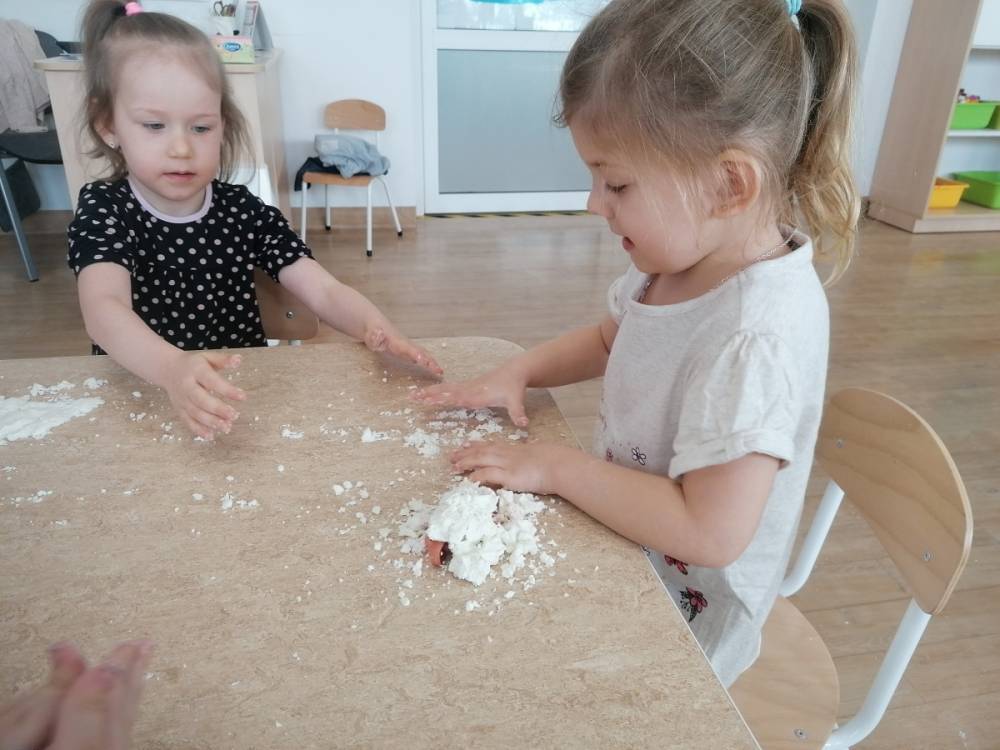 Temat dinozaurów oczywiście wśród przedszkolaków jest dobrze zanany, dlatego podczas zajęć dzieci wiedziały o czym mówimy. Podczas jednych zajęć dzieci mogły pobawić się dinozaurami oraz poszukać ich w piankolinie. Te pełne wrażeń zajęcia dostarczyły dzieciom wiele zabawy i radości.