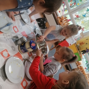 Na początku listopada, a dokładanie 8-mego, obchodziliśmy Dzień Zdrowego Śniadania. Misiaki wiedzą jak ważne jest zdrowe odżywianie dla prawidłowego funkcjonowania organizmu. Wychowankowie przygotowali do zajęć pasty: warzywną, jajeczną oraz z ciecierzycy. Wszyscy chętnie brali udział w przygotowaniach. Dzieci wykonały kanapeczki z różnego rodzaju pieczywa i według własnych upodobań. Śniadanko było wyjątkowo smaczne w tym dniu i towarzyszyła nam radosna atmosfera.