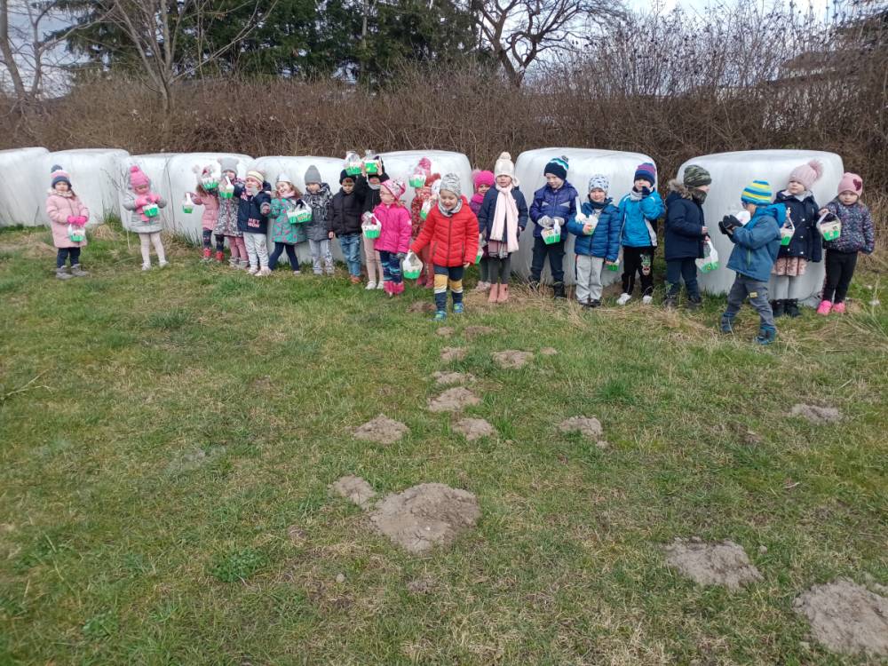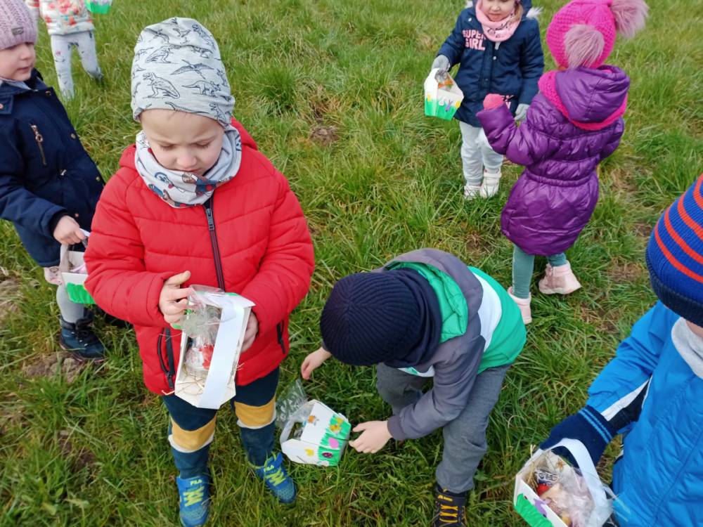 5 kwietnia grupę "Biedronki" odwiedził zajączek wilkanocny, który zostawił w sali dla dzieci ukryte czekoladowe jajeczka. Następnie zaprosił dzieci do poszukiwania koszyczków od niego. Po długim spacerze dotarliśmy do łąki rodziców Szymona, na której zajączek zostawił niespodzianki. Radość dzieci z odszukania koszyczków była przeogromna, dlatego dziękujemy wszystkim Rodzicom, którzy pomogli zajączkowi w przygotowaniu paczuszek i miejsca:)