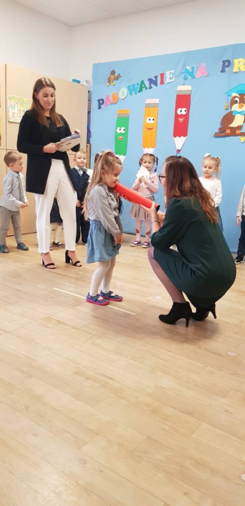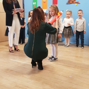 16 listopada był wyjątkowym dniem dla Jeżyków. Tego dnia miało miejsce uroczyste Pasowanie na Przedszkolaka. Tego dnia dzieci przybyły do przedszkola odświetnie ubrane i już nie mogły doczekać się, kiedy do naszej sali zawitają zaproszeni goście, przed którymi dzieci będą mogły zaśpiewać piosenki i wyrecytować wiersze. Jeżyki stanęły na wysokości zadania i po zakończonym występie zostały nagrodzone gromkimi brawami. Później dzieci złożyły uroczyste przyrzeczenie, jak na prawdziwe przedszkolaki przystało. Następnie dzieci zostały uroczyście pasowane na wesołego i dzielnego przedszkolaka przez Panią Dyrektor. Na zakończenie na Jeżyki czekały pamiątkowe dyplomy oraz słodki poczęstunek. Dziekujemy rodzicom, którzy zaangażowali się w przygotowanie poczęstunku.