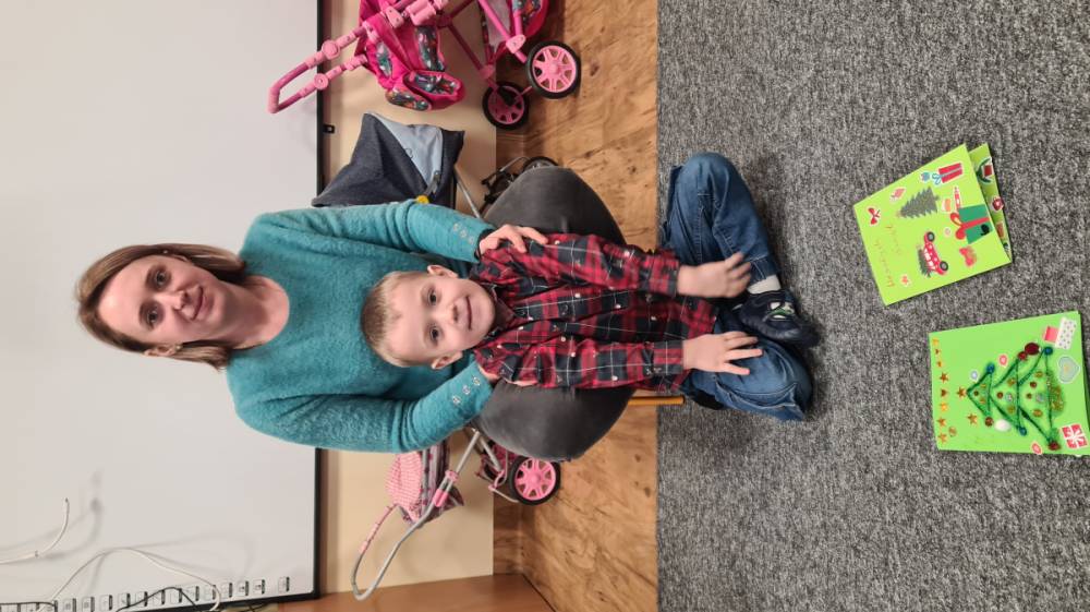 Warsztaty Świąteczne były świetną okazją do spotkania dzieci z rodzicami i wspólnemu wykonaniu kartki Świątecznej, którą w późniejszym czasie dzieci wręczą Seniorom z Brus.