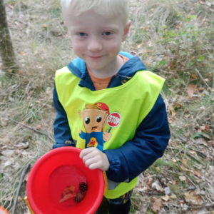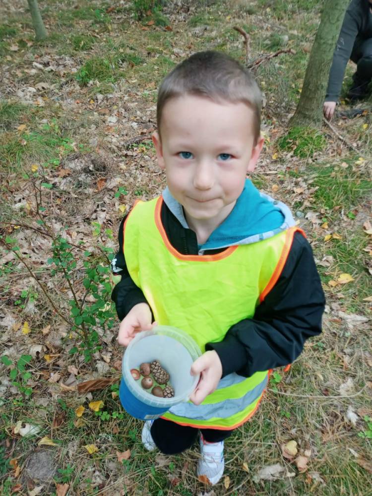 2 października dzieci z grupy "Muchomorki" pojechały na wycieczkę do lasu. Dzięki pani leśniczej podczas spaceru w lesie dzieci poznały różnorodność szaty roślinnej lasu: drzewa iglaste, liściaste, kszewy, mchy i grzyby. Muchomorki słuchały odgłosów lasu, a do kącików przyrodniczych zbierały skarby, które pani jesień zostawiła w lesie. Głównie były to szyszki, żołędzie, różne rodzaje liści. Dzieci spędziły miło czas na świeżym powietrzu i w otoczeniu pięknej malowniczej przyrody. Pełne wiedzy o lesie i niezapomnianych wrażeń przedszkolaki wróciły do przedszkola.