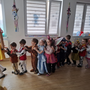13 lutego nastąpiło wielkie poruszenie wśród młodszych grup przedszkolnych. Otóż tego dnia odbył się długo wyczekiwany i dla niektórych pierwszy Bal Karnawałowy. Wszystkie dzieci pojawiły się w pięknych przebraniach, które miały możliwość zaprezentować na naszym wybiegu mody karnawałowej. Dzieci pląsały przy energicznych rytmach: kaczuszek, lambady, gimi misia i wielu, wielu innych tańcach połamańcach. Karnawałowy wąż udał się przez wszystkie sale przedszkolne wraz ze wszystkimi grupami 3-latków. Była też chwila wytchnienia przy przekąskach przygotowanych przez rodziców dzieci. Takie imprezy integracyjne lubimy najbardziej.