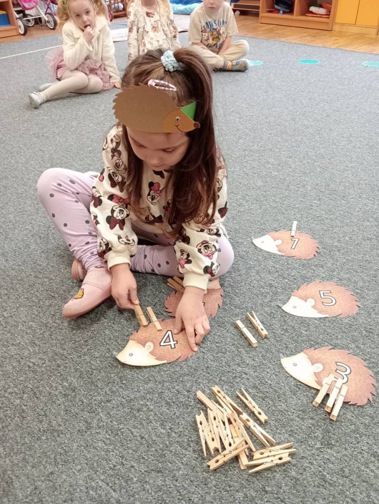 Biedroneczki świętują Dzień Jeża - tego dnia dzieci poznały budowę jeża, doskonaliły liczenie przyczepiając klamerkowe kolce do sylwety jeży. Ćwiczyły spostrzegawczość odnajdując odpowiednie ilustracje, dzięki czemu dowiedzieliśmy się co na swoim grzbiecie niesie jeżyk. Poznaliśmy też wiele ciekawostek o życiu jeży.