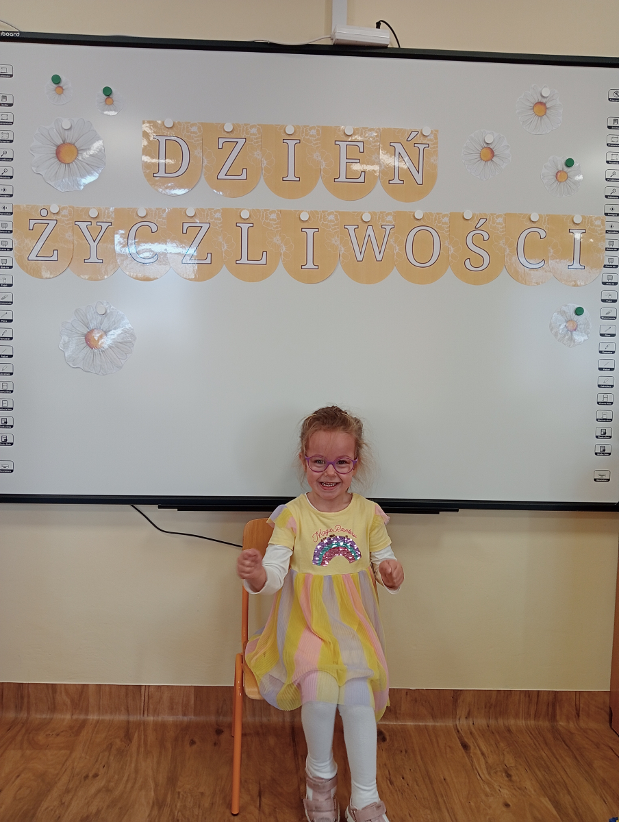 21 listopada dzieci z grupy Biedronki świętowały Dzień Życzliwości. Tego dnia dzieci przybyły do przedszkola ubrane na żółto, ponieważ kolor ten symbolizuje radość, optymizm, ciepło i słońce. Dzieci nauczyły się wierszyka, który mówił że warto być życzliwym na codzień, nie tylko od święta. Kolejną niespodzianką było odwiedzenie pozostałych grup przedszkolnych i poczęstowanie ich cukierkiem oraz wręczenie wcześniej przygotowanych sentencji na dzień życzliwości. Był to bardzo miły dzień, który wywołał uśmiech na wielu twarzach.