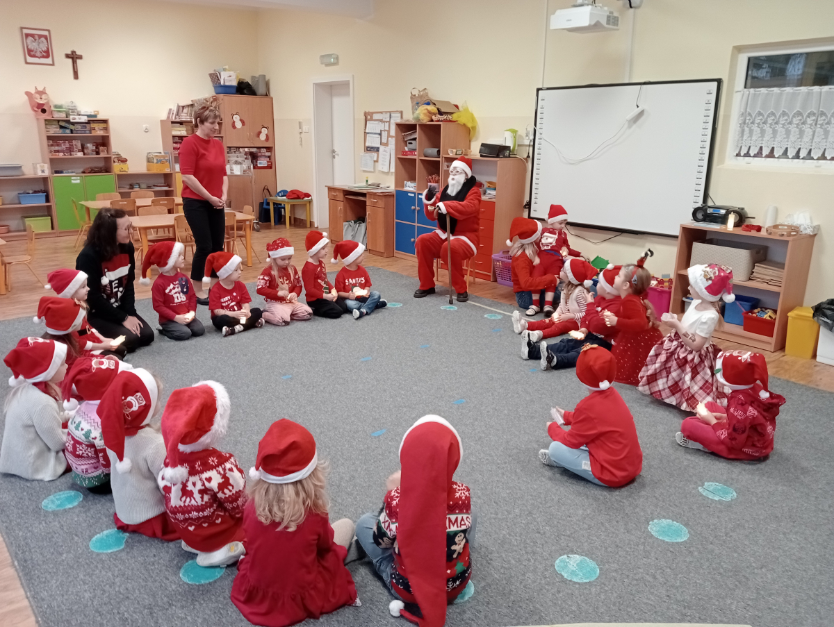 5 grudnia dzieci przybyły do przedszkola ubrane na czerwono i od rana wypatrywały już długo oczekiwanego gościa - Świętego Mikołaja. Zaraz po śniadanku usłyszały znajomy dźwięk - dzwoneczek, ktróry dał nam znać, że Mikołaj musi być gdzieś w pobliżu. Mikołaj odwiedził nasze Biedroneczki osobiście i chętnie wysłuchał świąteczną piosenkę, której uczyliśmy się specjalnie dla niego. Pod koniec wizyty każdy przedszkolak otrzymał piękny prezent, udało się nam również zrobić wspólne zdjęcie z naszym wspaniałym gościem.