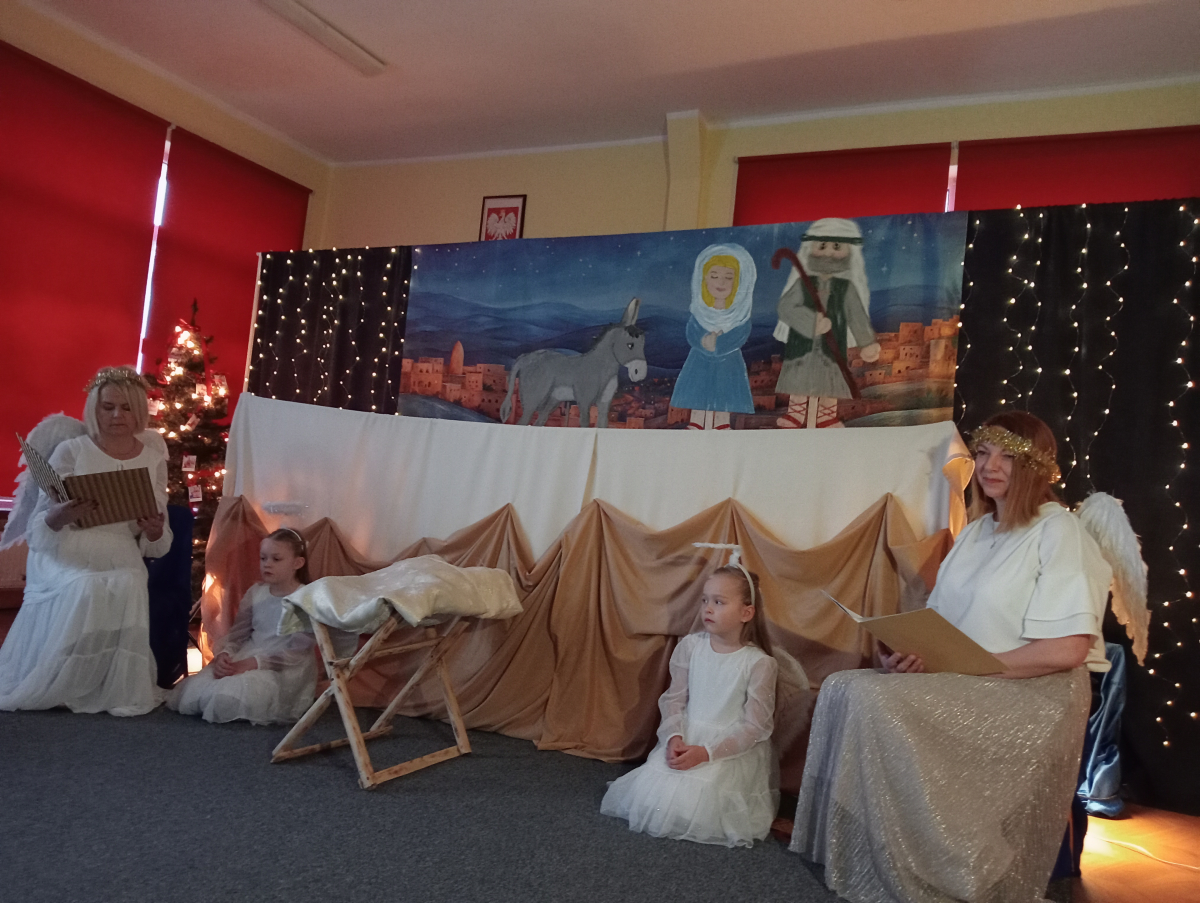 W grudniu nasza grupa miała przyjemność obejrzeć przedstawienie pt."Osiołek i gwiazda" w wykonaniu pracowników naszego przedszkola. Przedstawienie to wprawiło nas w świąteczny nastrój, ponieważ opowiadało o narodzeniu Jezusa. Dzieci nagrodziły aktorów gromkimi brawami, dziękując za możliwość uczestnictwa w tym pięknym wydarzeniu.