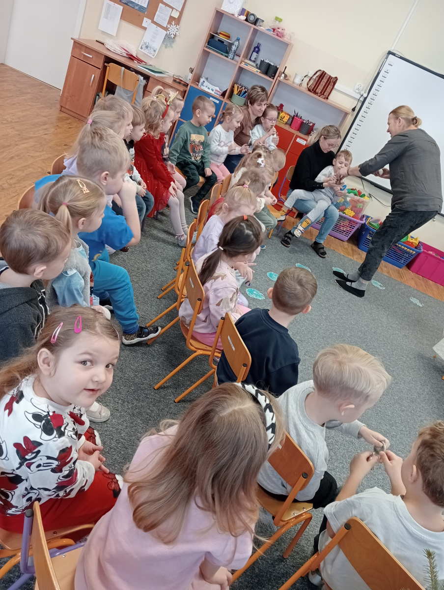 W styczniu nasze przedszkole odwiedziła Pani Kasia bajeczka z teatrzykiem z koszyka pt "Dzwonki Bożego Narodzenia"