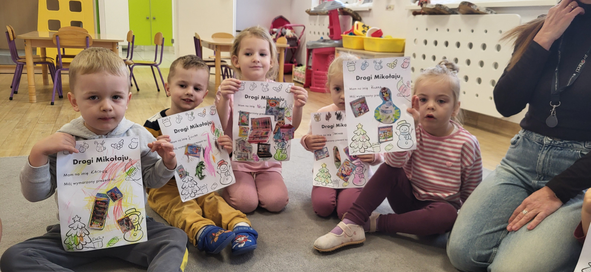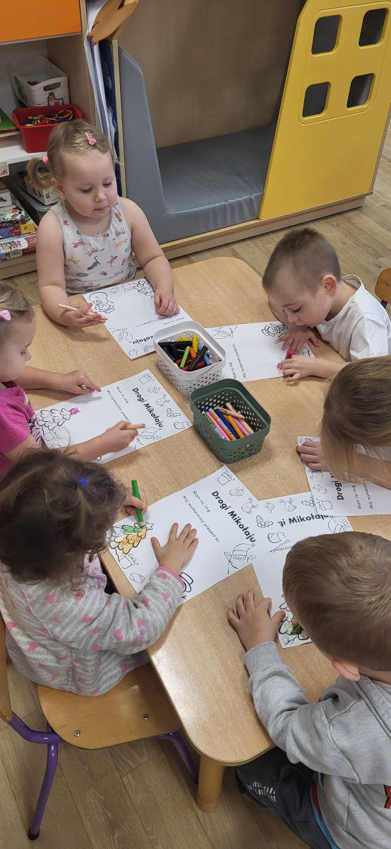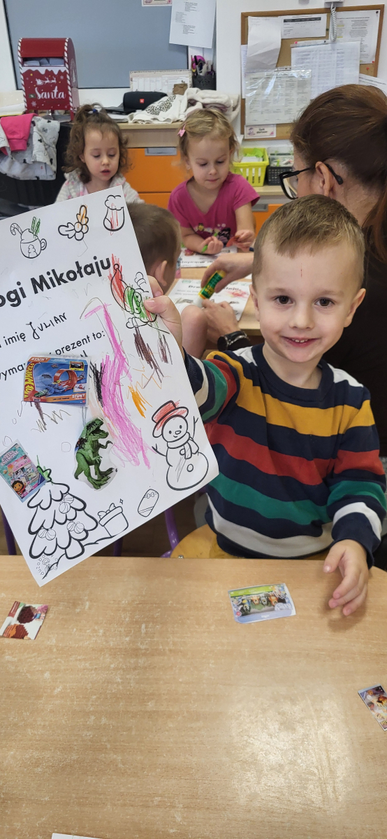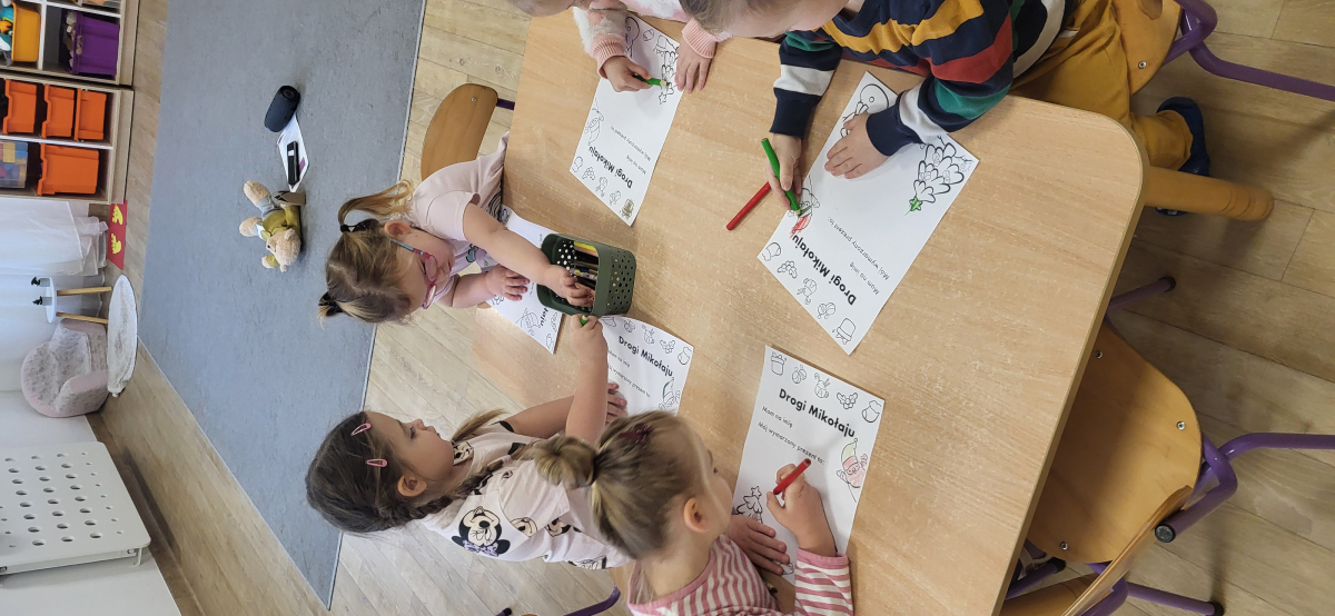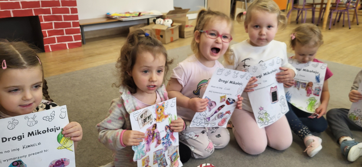 Dziś każde dziecko stworzyło swój wyjątkowy list do Mikołaja – kolorowały, ozdabiały, a także wybierały i przyklejały na list wycięte z gazetek sklepowych obrazki przedstawiające wymarzone prezenty. Kreatywności i radości było co niemiara!