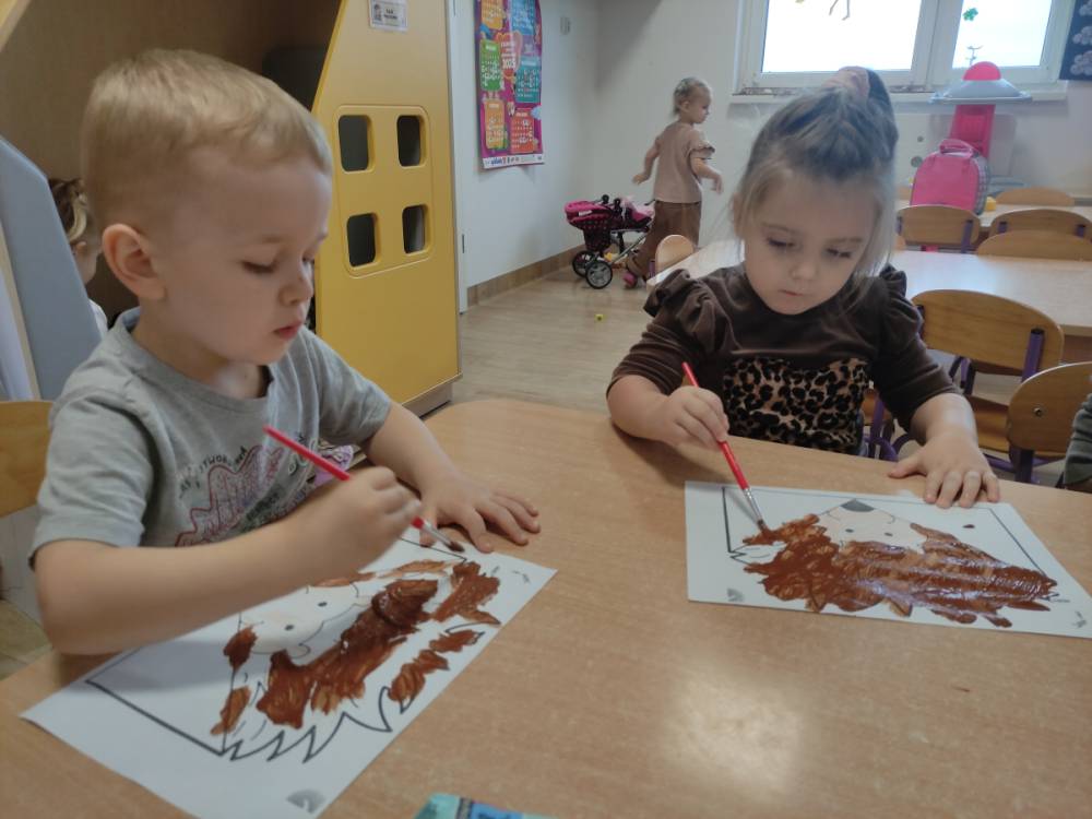 Dzieci wykonały również pracę plastyczną, która rozwijały ich wyobraźnię i zdolności manualne. Na zajęciach z języka angielskiego poznały historię jeża w formie opowieści, a dodatkową atrakcją była degustacja przysmaków jeża – oczywiście w postaci żelkowych robaczków, które wszystkim bardzo smakowały.