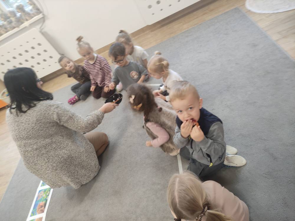 W tym wyjątkowym dniu dzieci przyszły ubrane w barwach jeża, aby wspólnie świętować urodziny tego leśnego zwierzaka. Podczas zajęć dowiedziały się wielu ciekawostek na temat życia i zwyczajów jeży, poznając ich świat z bliska.