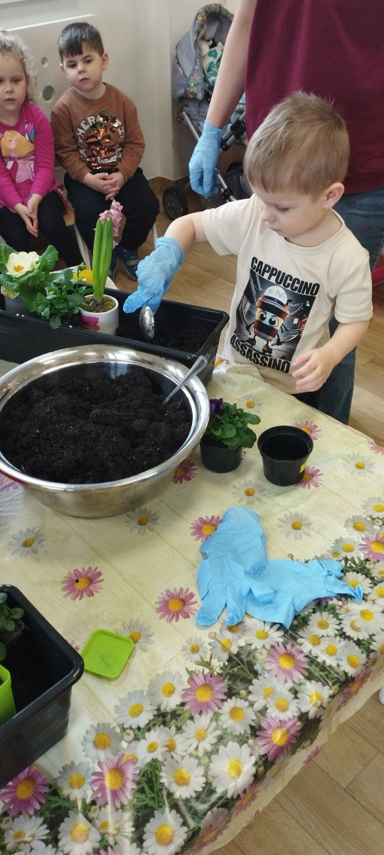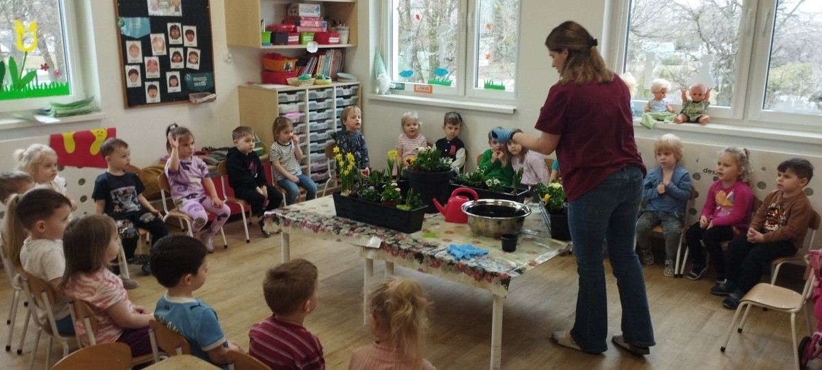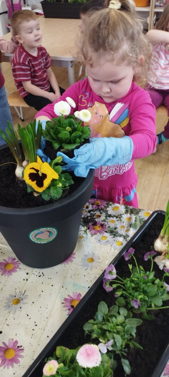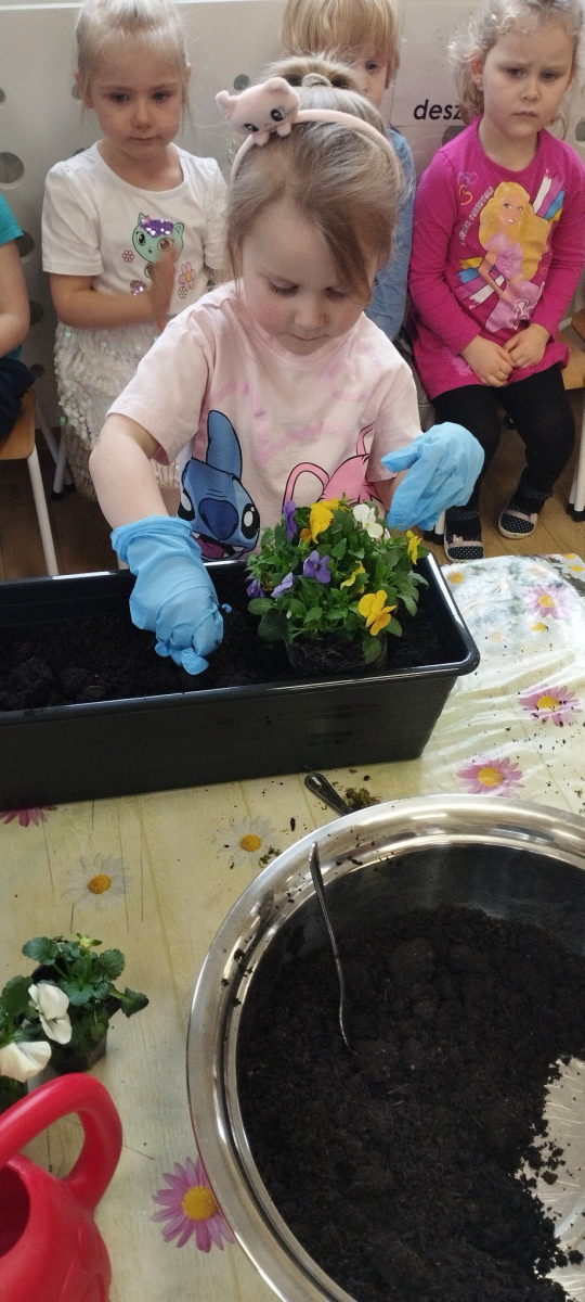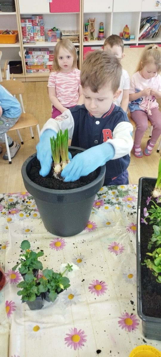 We wtorek 17 marca dzieci samodzielnie sadziły kolorowe kwiatki, które przyniosły do przedszkola.