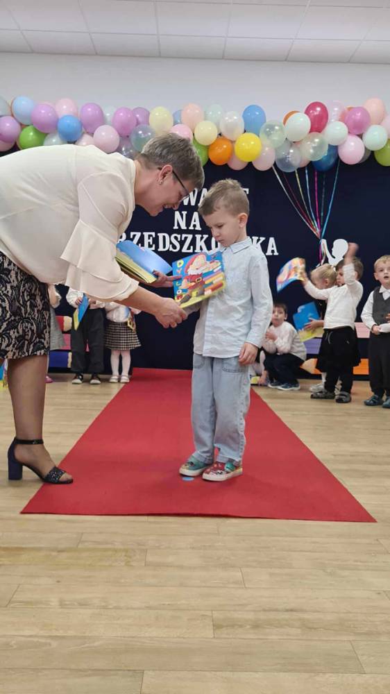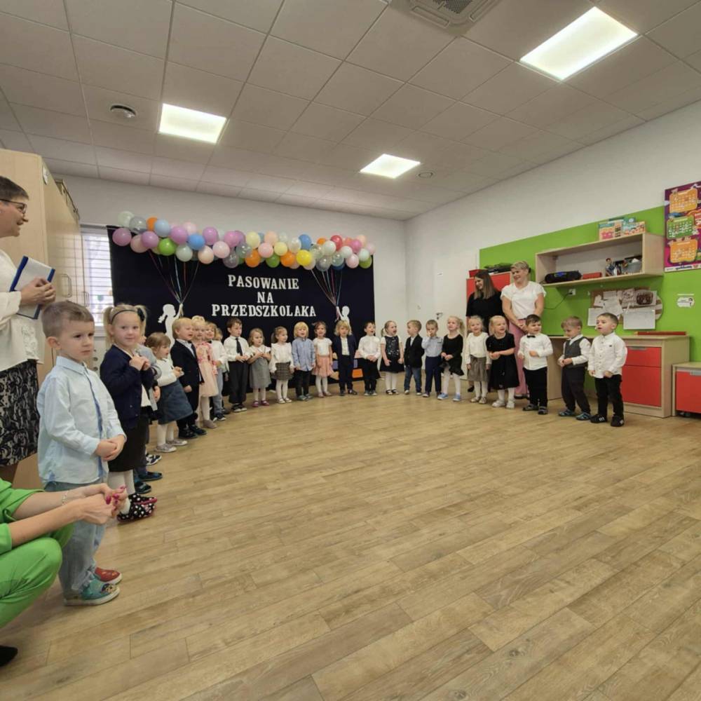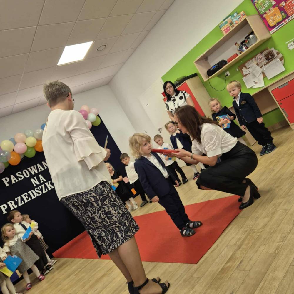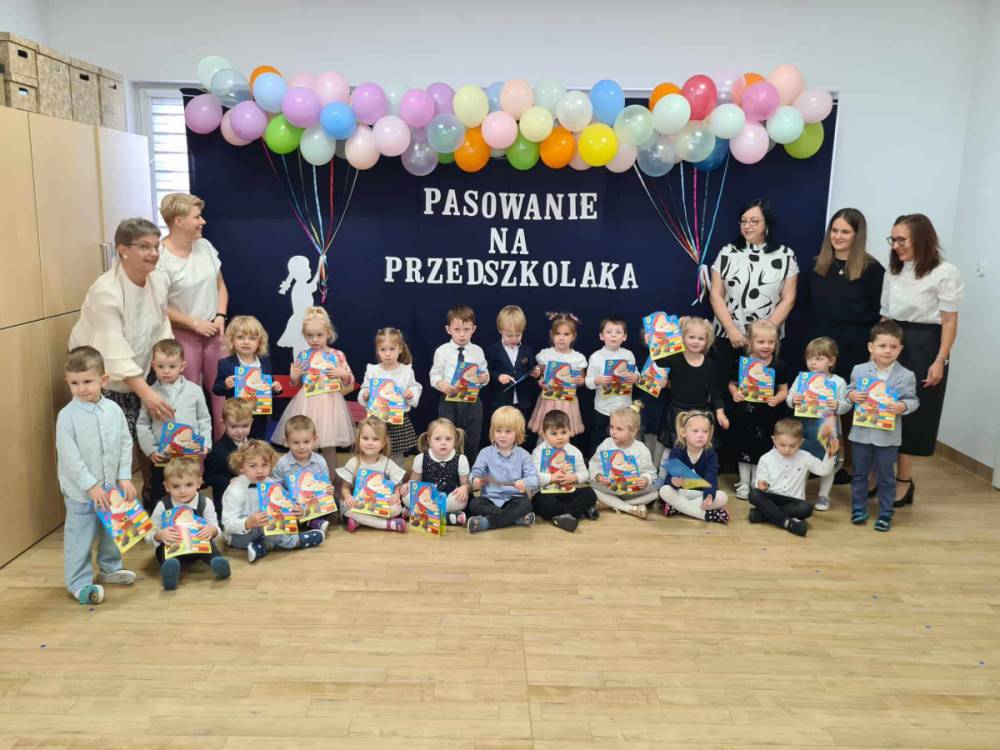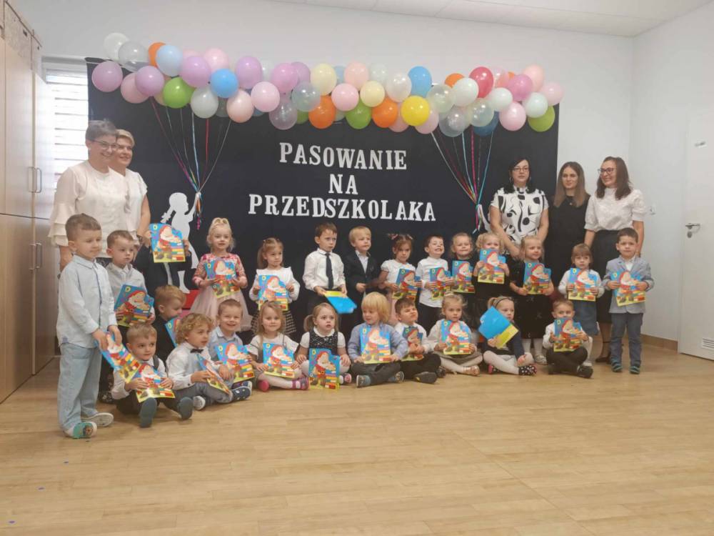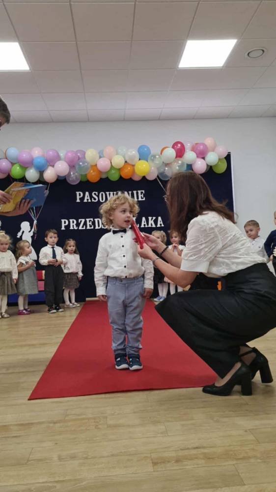 6 listopada odbyła się pierwsza wyjatkowa uroczystość dla dzieci z grupy Krasnoludki. Tego dnia odbyło się "Uroczyste pasowanie na przedszkolaka" z udziałem zaproszonych Rodziców oraz Pani Dyrektor. Pasowanie na Przedszkolaka, to pierwsza tak ważna uroczystość przedszkolna dla dzieci z najmłodszej grupy wiekowej. Uroczystość ta w dużym stopniu stanowi zakończenie procesu adaptacyjnego dzieci do warunków i zasad panujących w przedszkolu. Po powitaniu gości dzieci zaprezentowały swoje umiejętności recytatorskie, wokalne i muzyczno-ruchowe. Po występie Pani Dyrektor pasowała dzieci piękną kredką na zawsze uśmiechniętych przedszkolaków, a panie wręczały dyplomy. Od tej pory Krasnoludki są już "prawdziwymi" przedszkolakami. Tę chwilę uwieczniliśmy na wspólnej fotografii, a uwieńczeniem wydarzenia był poczęstunek zorganizowany przez rodziców. Pierwsza integracyjna uroczystość na długo pozostanie w naszej pamięci.