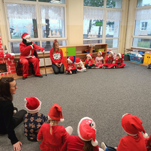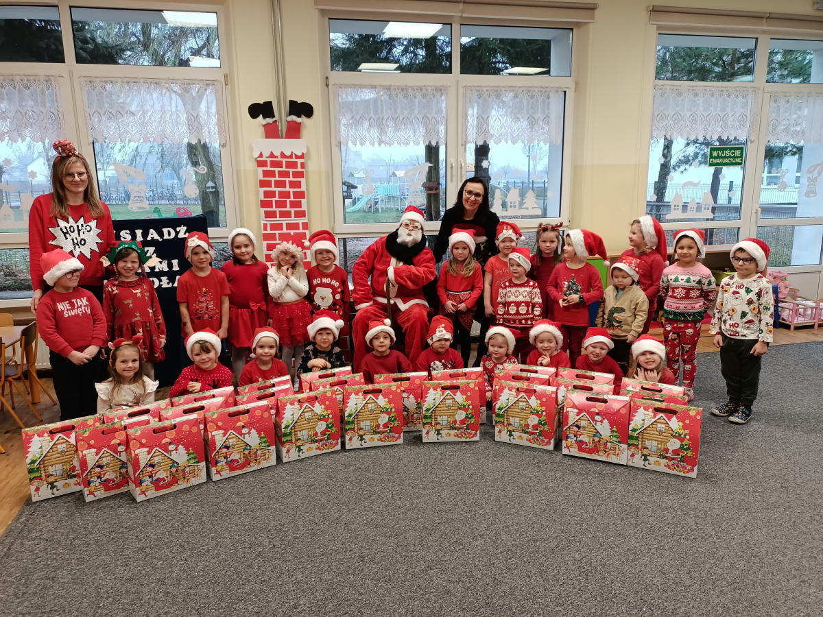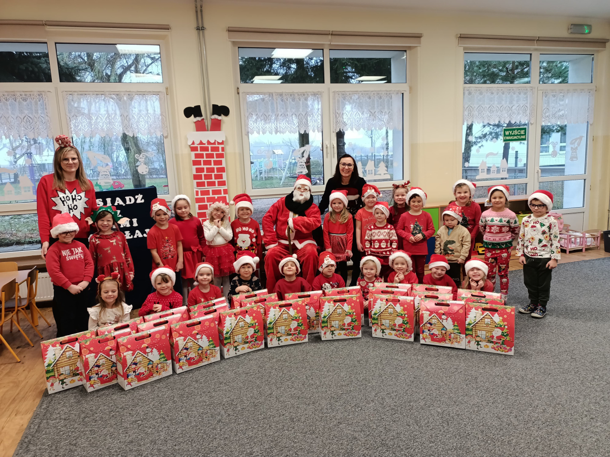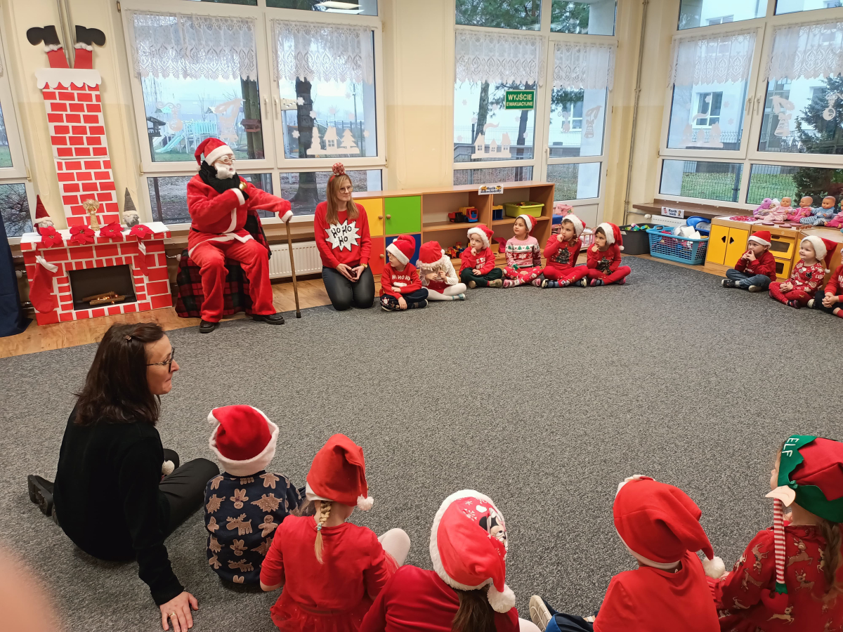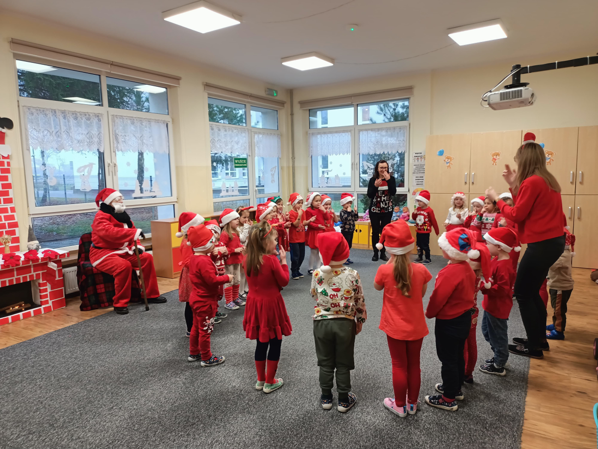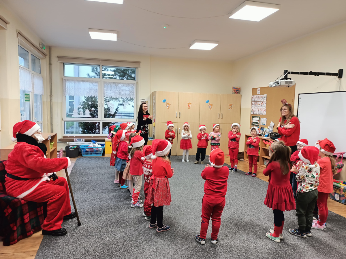 Mikołajki zawsze przynoszą dzieciom wiele pozytywnych wrażeń. Przez cały tydzień przedszkolaki słuchały opowieści o Mikołaju, jego pomocnikach i akcesoriach potrzebnych w ich pracy. Chętnie wykonały pracę plastyczną przedstawiającą Mikołaja, a także nauczyły się piosenki oraz tańca dla wyczekiwanego gościa. Aż w końcu w piątek 5 grudnia pojawił się w naszym przedszkolu. Najpierw dzieci przywitały się z Mikołajem i miały okazję troszkę porozmawiać z nim. Potem zaprezentowały się w tańcu z piosenką pt. "Mikołaju do nas zapraszamy". Mikołąj był uradowany występem, a dzieci z zadowoleniem obiecały, ze w przyszłym roku równie pięknie się przygotują. Na końcu każde grzeczne dziecko otrzymało swój prezent. Radość w oczach naszych Misiaków nie miała końca, a emocje opadły dopiero podczas odpoczynku.