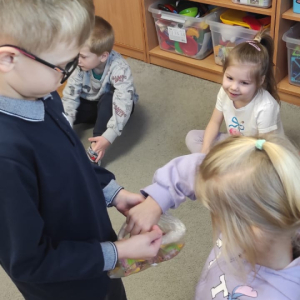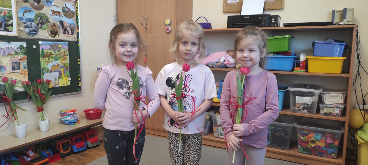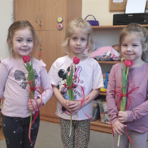 8 marca był świętem dużych i małych kobietek. Chłopcy wręczyli kwiatki nie tylko swoje pani ale też swoim koleżankom. A Nikodem miał dla wszystkich słodką niespodziankę.