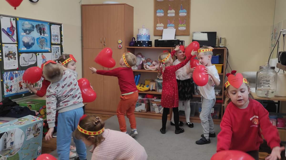 13 lutego MOTYLKI obchodziły Walentynki. W tym dniu królował kolor czerwony, miłe słowa dla wszystkich i dobra zabawa.