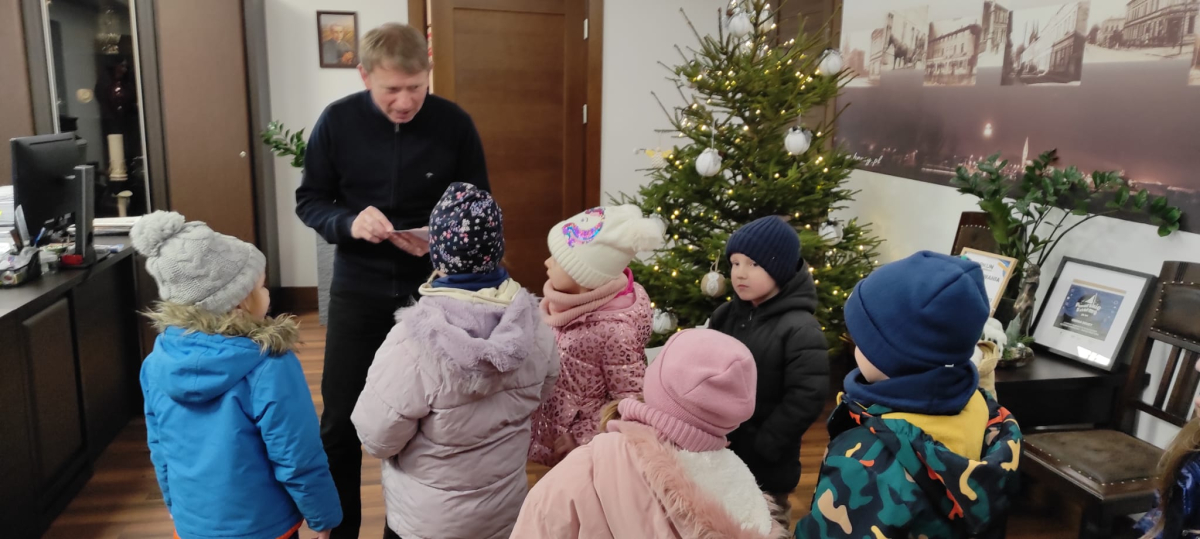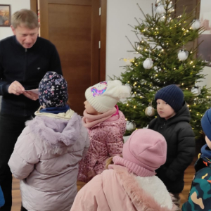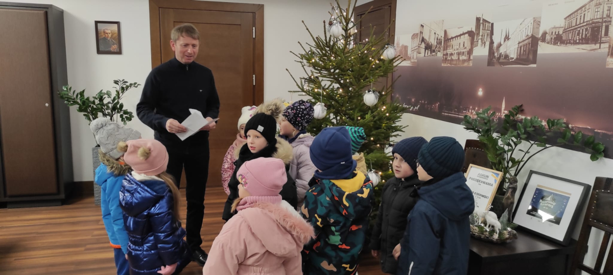 Przed świętami Motylki odwiedziły pana burmistrza Witolda Osowskiego i złożyły świąteczne życzenia dla wszystkich pracowników urzędu, zaśpiewału też razem z panem burmistrzem kolędę .