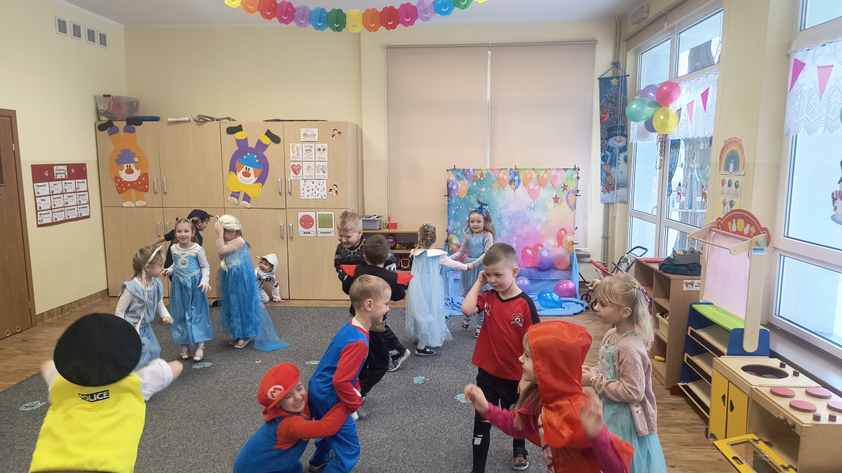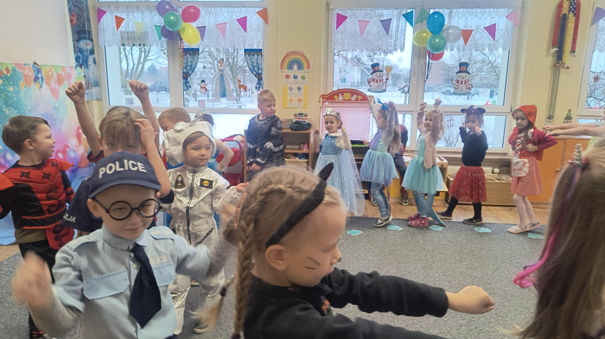 W naszej placówce odbył się Bal Karnawałowy, który dostarczył dzieciom wielu niezapomnianych wrażeń. Wydarzenie rozpoczęło się od wspólnych zabaw ruchowych przy muzyce, wprowadzających wszystkich w karnawałowy nastrój. Dzieci dowiedziały się również, czym jest karnawał oraz jakie tradycje są z nim związane.