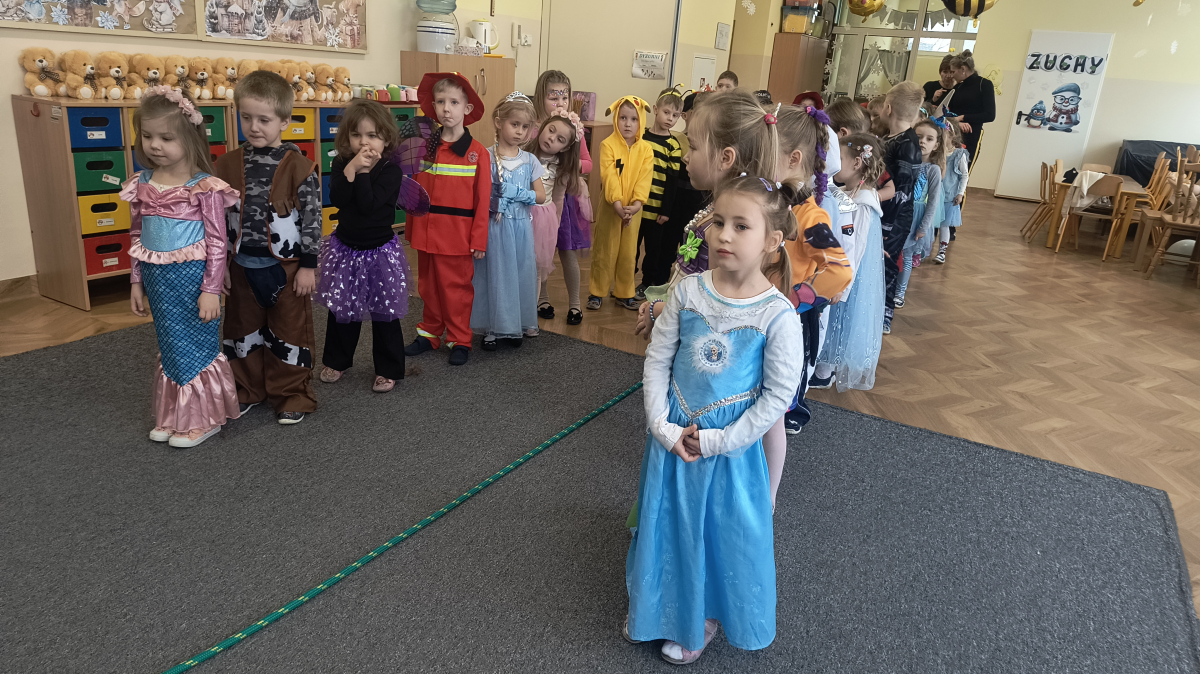 Nie zabrakło również prezentacji strojów karnawałowych, podczas której dzieci z dumą zaprezentowały swoje kolorowe i pomysłowe przebrania. Każdy strój został nagrodzony gromkimi brawami.