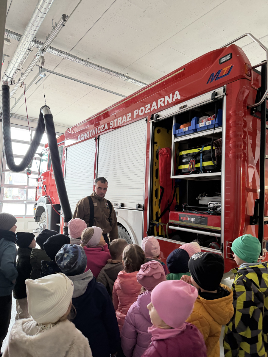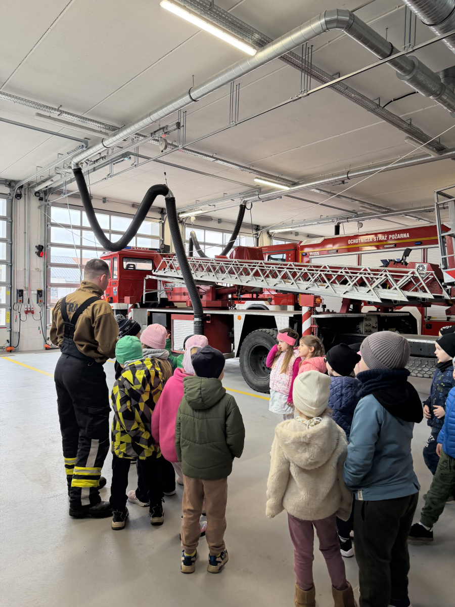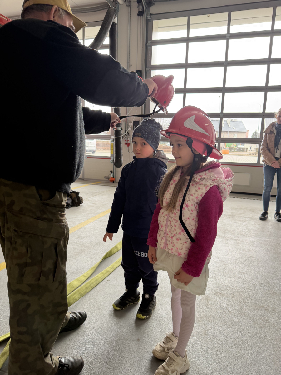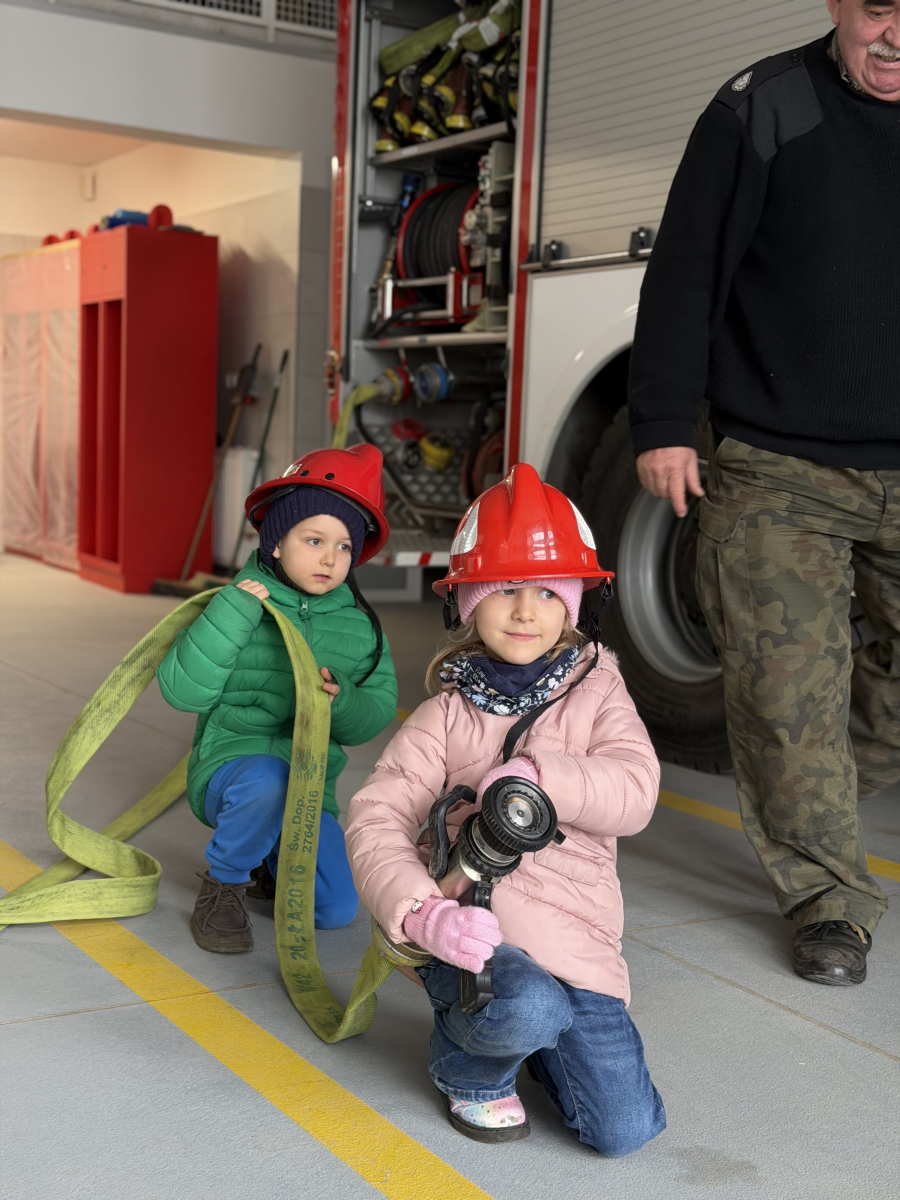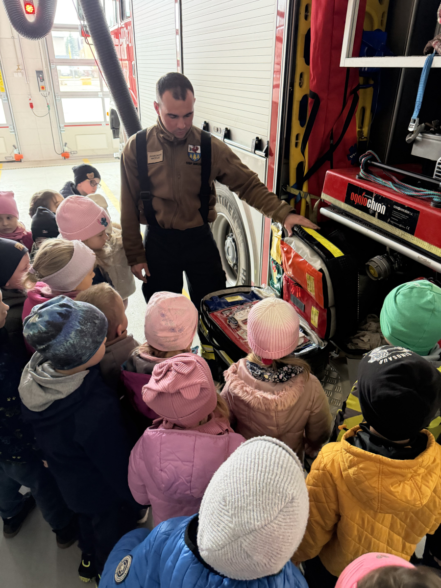 Niezwykłą ciekawostką dla dzieci było to, że ubiór strażaka wraz z wyposażeniem waży około 30 kg, a butla z tlenem wystarcza na godzinę pracy. Przedszkolaki dowiedziały się również, że strażacy posiadają specjalną czujkę, która uruchamia alarm, gdy strażak przez dłuższą chwilę pozostaje bez ruchu, co zwiększa ich bezpieczeństwo podczas akcji.Spotkanie było bardzo interesujące i pełne nowych doświadczeń.