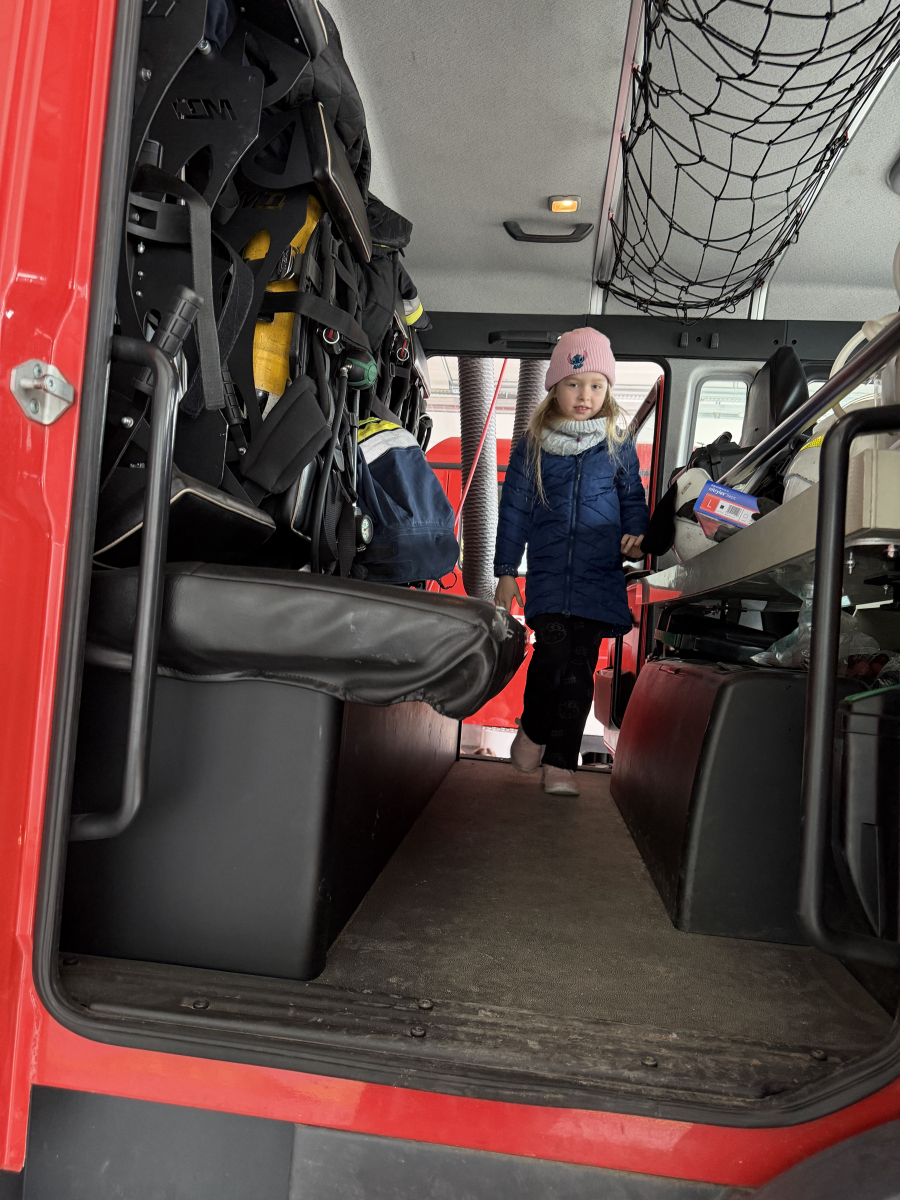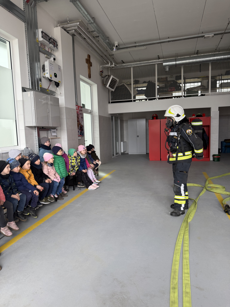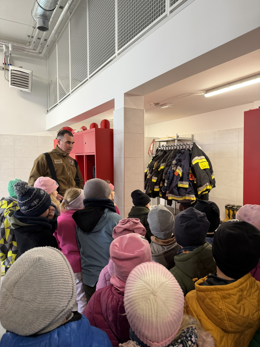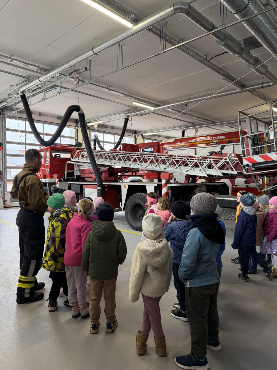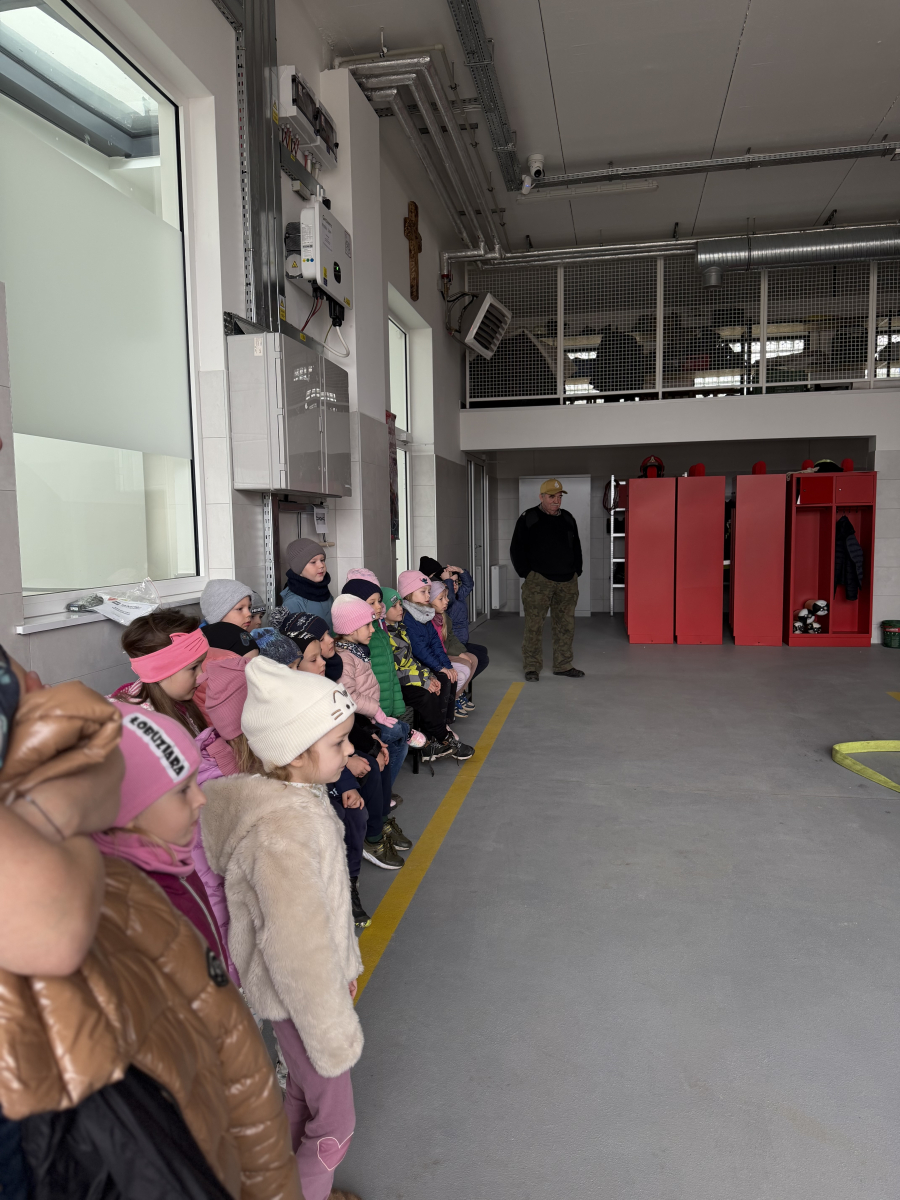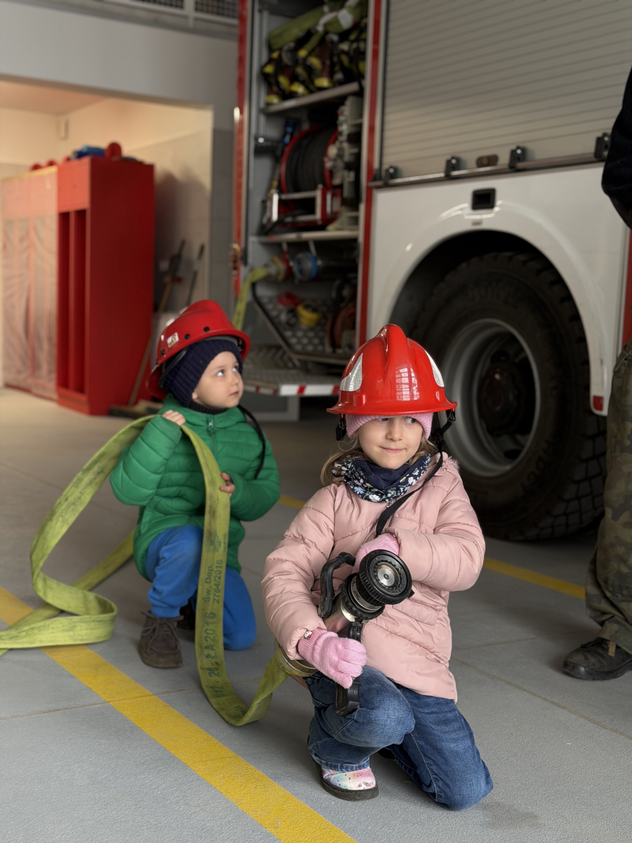 Niezwykłą ciekawostką dla dzieci było to, że ubiór strażaka wraz z wyposażeniem waży około 30 kg, a butla z tlenem wystarcza na godzinę pracy. Przedszkolaki dowiedziały się również, że strażacy posiadają specjalną czujkę, która uruchamia alarm, gdy strażak przez dłuższą chwilę pozostaje bez ruchu, co zwiększa ich bezpieczeństwo podczas akcji.Spotkanie było bardzo interesujące i pełne nowych doświadczeń.