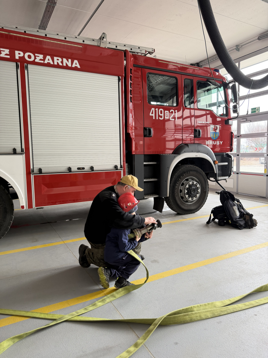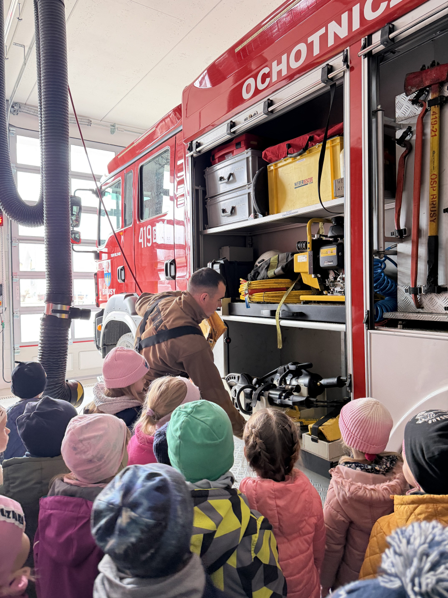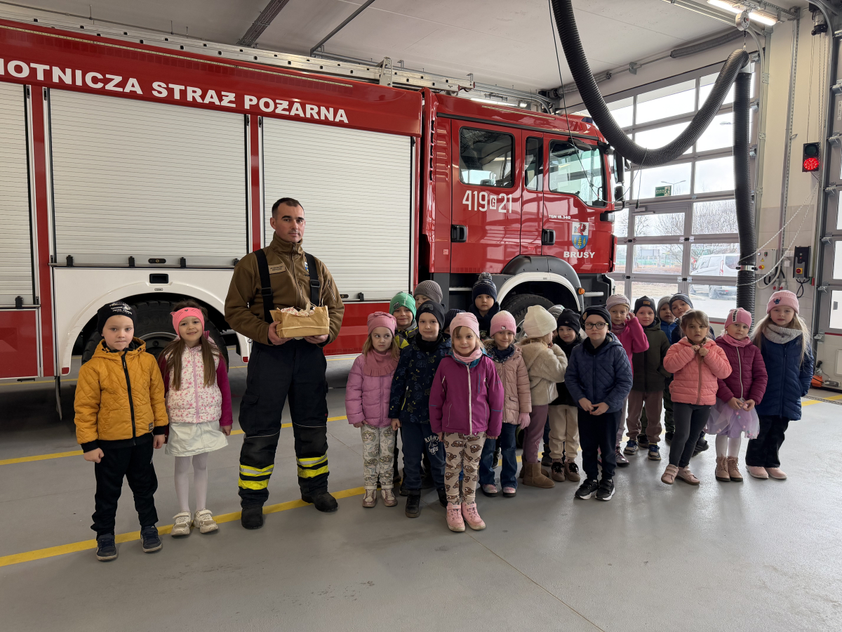 Przedszkolaki z grupy Muchomorki miały wyjątkową okazję odwiedzić Ochotniczą Straż Pożarną w Brusach. Podczas wizyty dzieci oprowadzali panowie druhowie Marek i Mateusz, którzy w bardzo ciekawy i przystępny sposób przekazali wiele praktycznej wiedzy o pracy strażaka.