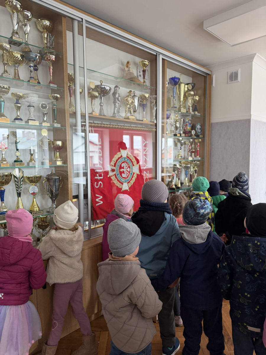 Dzieci zobaczyły również pomieszczenia, w których odbywają się spotkania strażaków, a także puchary i nagrody zdobyte za liczne osiągnięcia. Druhowie pokazali także zabytkową pompę strażacką oraz opowiedzieli o nawałnicy i akcjach ratowniczych, w których biorą udział.