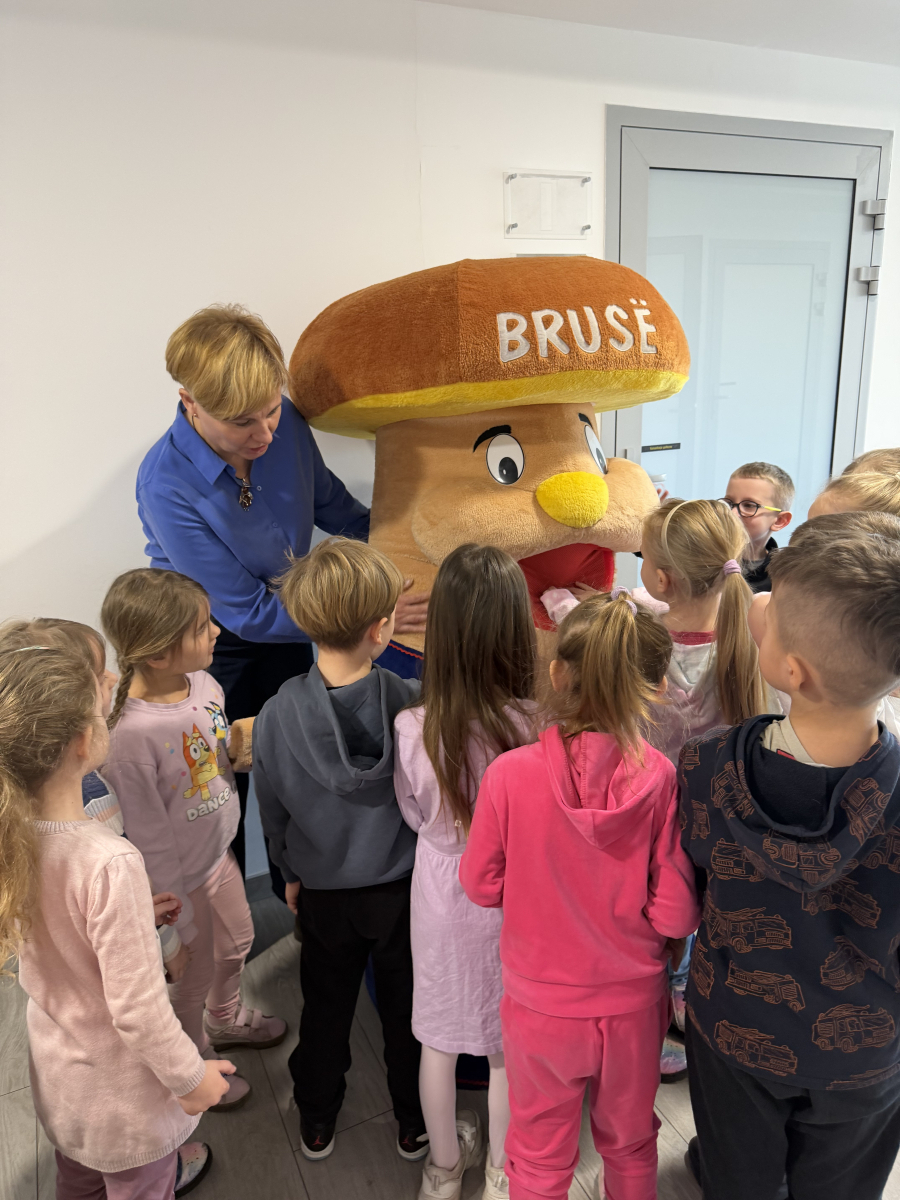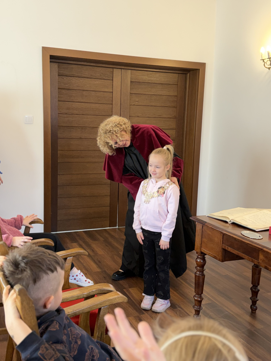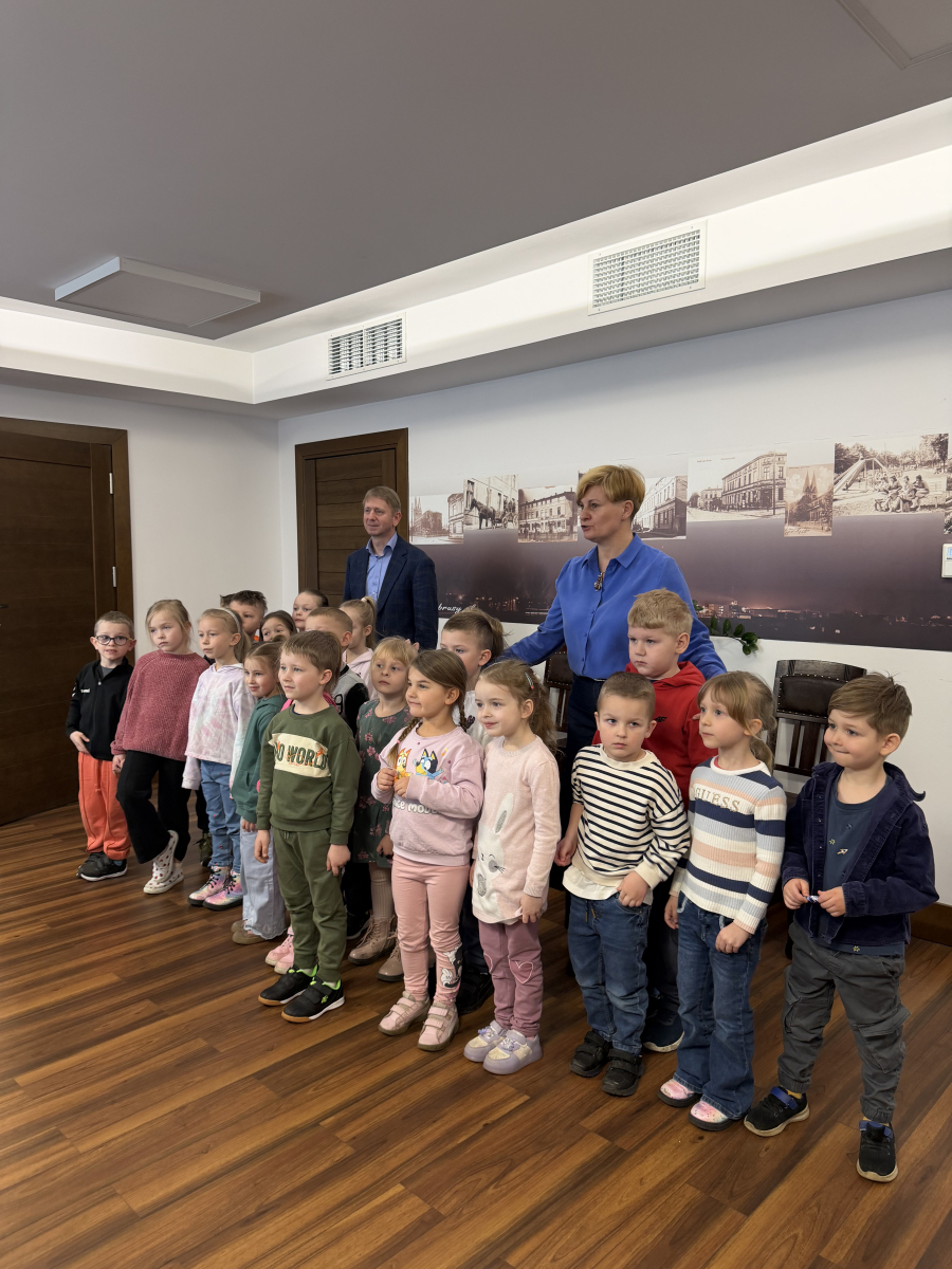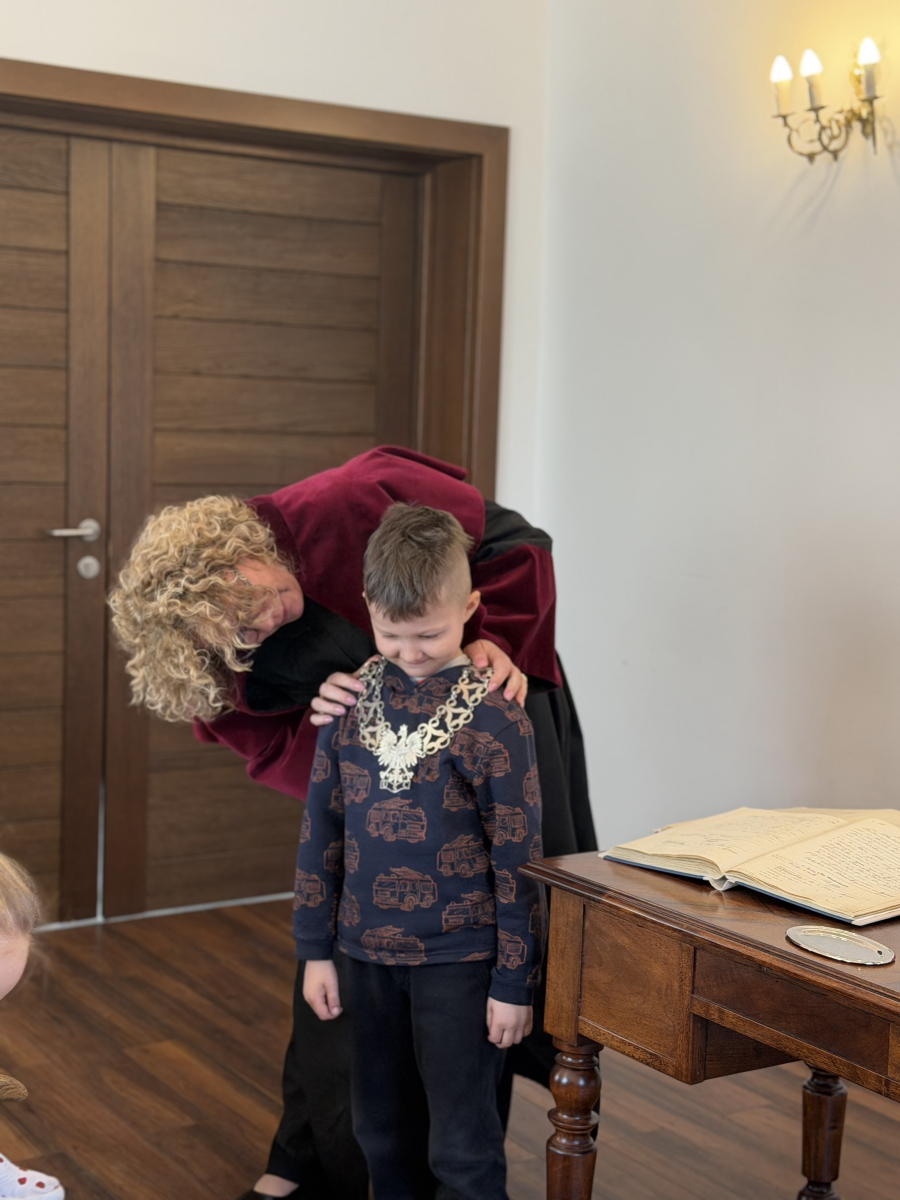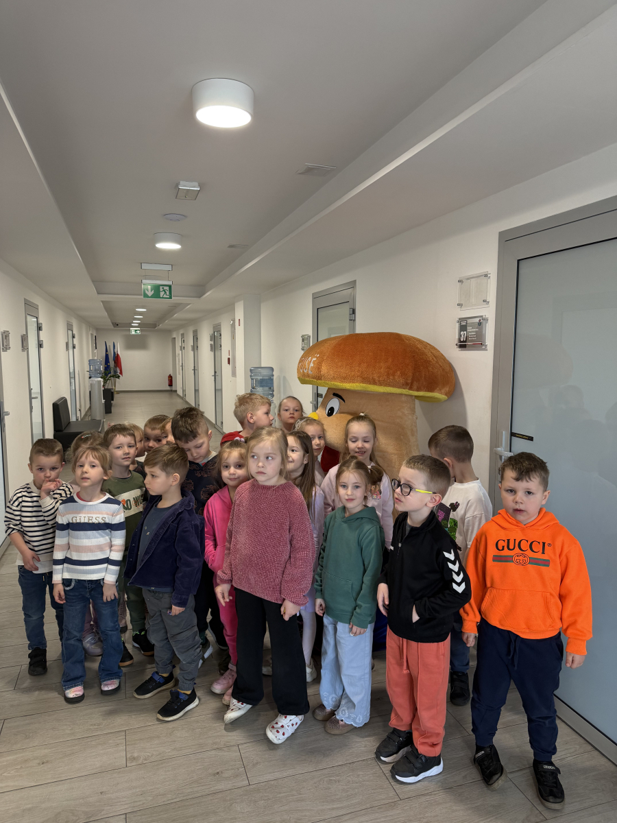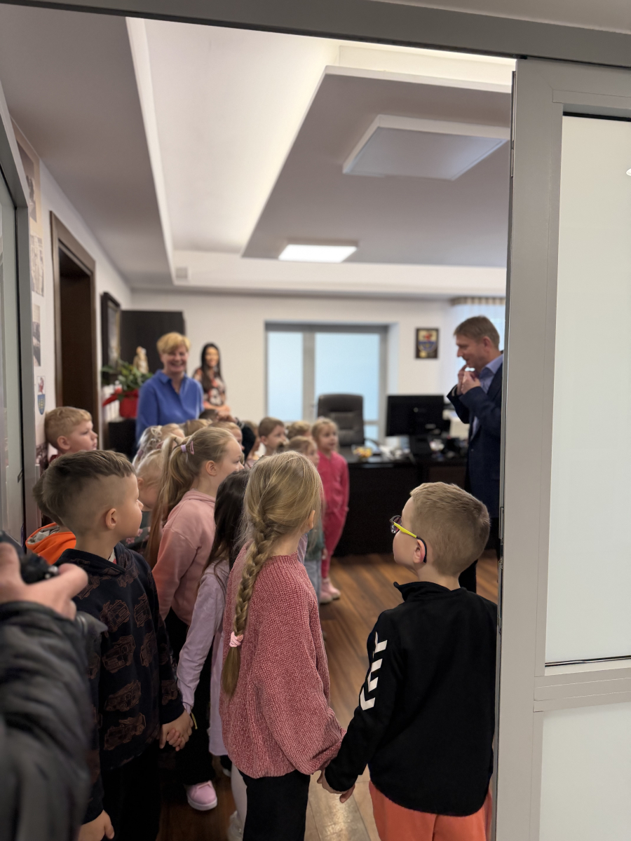 Podczas wizyty zobaczyliśmy również miejsce pracy taty Jagienki oraz zrobiliśmy pamiątkowe zdjęcia z Bruskiem. Odwiedzilimy również archiwum, gdzie mogliśmy zobaczyć jak przechowywane są dokumenty. Na zakończenie zostaliśmy obdarowani słodkościami, a w ramach podziękowania wręczyliśmy jabłka jako symbol nadchodzącej wiosny.