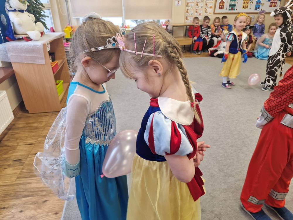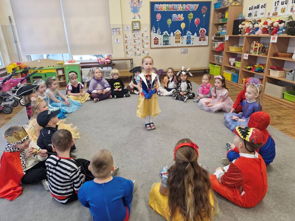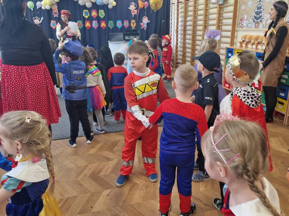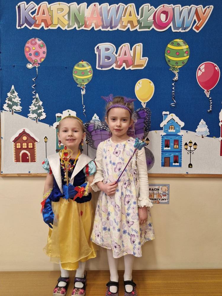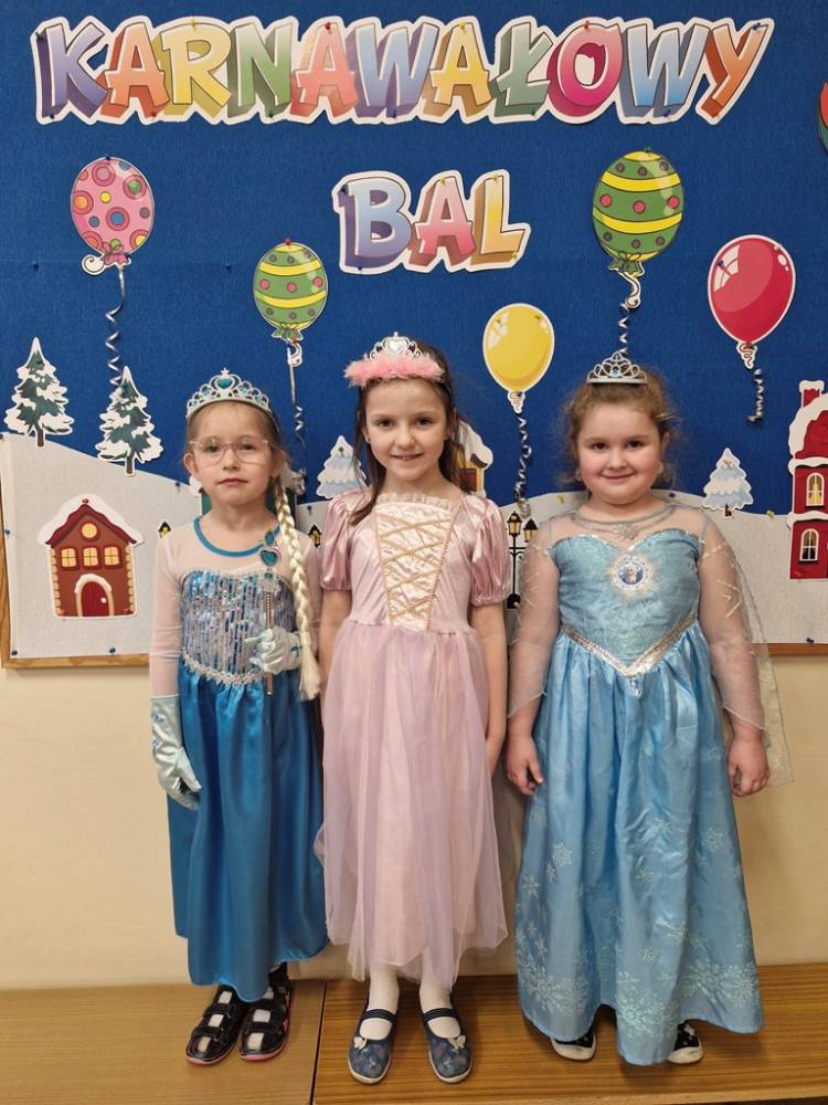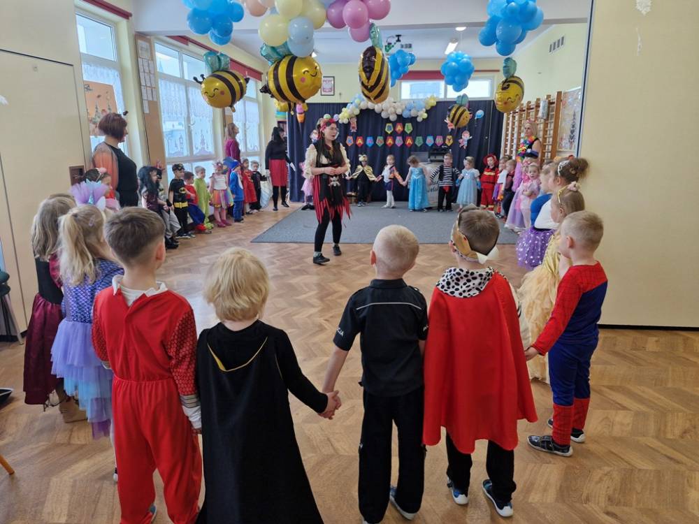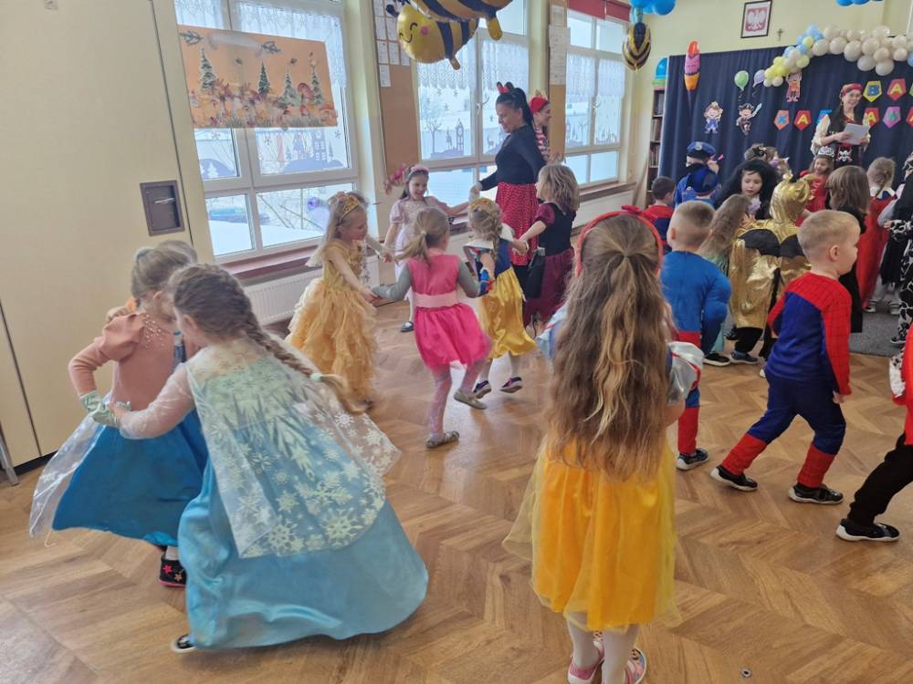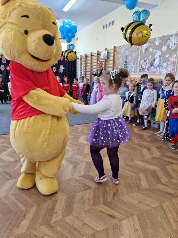 W czwartek, tj. 5 lutego 2026 roku w przedszkolu odbył się bal karnawałowy, na który dzieci czekały z utęsknieniem. Panie dołożyły wszelkich starań, by wystrój przedszkola wprowadził przedszkolaków w radosny nastrój i zachęcał do wspólnych zabaw. Od samego rana do sali przedszkolnej wchodziły dzieci przebrane za postaci z różnych bajek, a motywem przewodnim tegorocznego balu byli bohaterowie bajek Walta Disneya. Można było zobaczyć: Królewnę Śnieżkę, Elsę z Krainy Lodu, Bellę, motyla, piratów itd. Panie animatorki z firmy Animacje Rewelacje zadbały o wspaniałą atmosferę karnawałową i wspólnie bawiły się przy rytmach piosenek dziecięcych i znanych przebojów muzyczych. Zabawę karnawałową uatrakcyjniły wspólne zabawy przy muzyce z elementem współzawodnictwa. Dzieci szukały skarbu, rzucały "nieprawdziwymi" perłami, chwytały bańki mydlane, a także bawiły się z Kubusiem Puchatkiem, który był gościem honorowym balu. Zabawę karnawałową dzieci kontynuowały w sali przedszkolnej, gdzie tańczyły i pląsały przy piosenkach dziecięcych, a także uczestniczyły w zabawach pry muzyce. Był taniec z balonem, taniec na gazecie i zabawa "Nie baw się zapałkami". Podczas przerwy na dzieci czekał słodko-owocowy poczęstunek przygotowany przez mamy. Bal przebierańców przyniół dzieciom wiele radości, a piękne chwile zostały uwieńczone na wspólnych zdjeciach. Dzieci serdecznie dziękują rodzicom za przygotowanie przebrań karnawalowych, a w szczególności mamom: Mai i Krysi za przygotowanie poczęstunku.