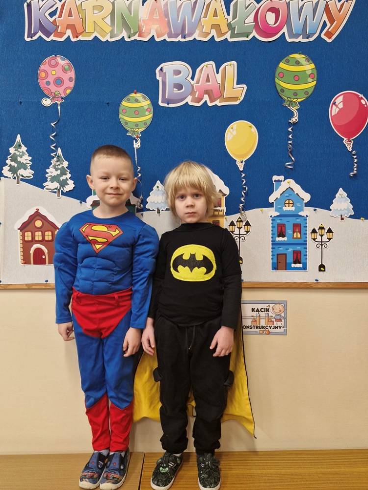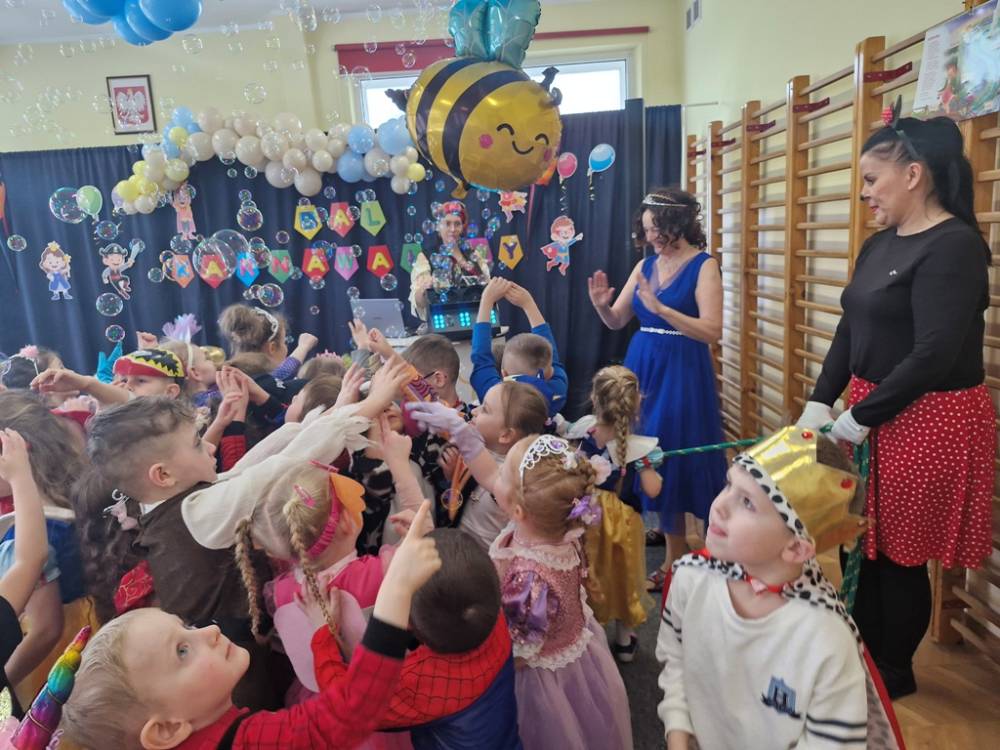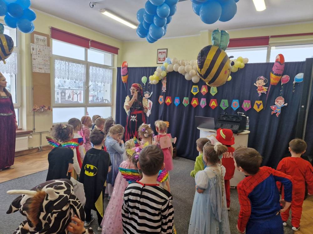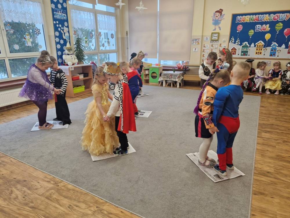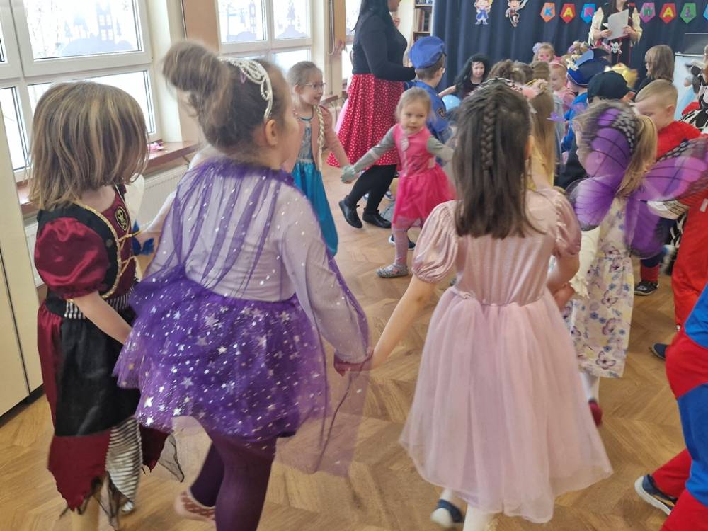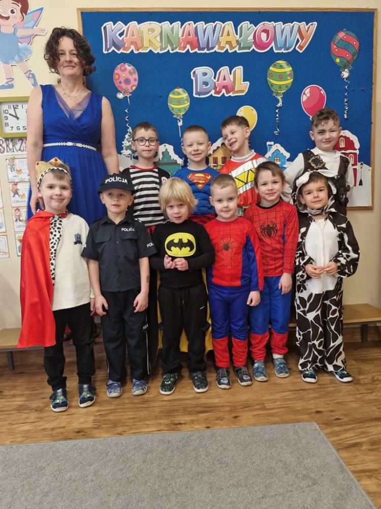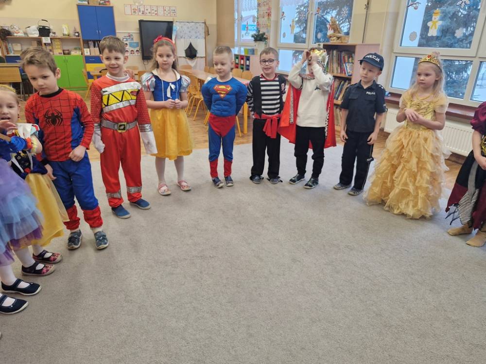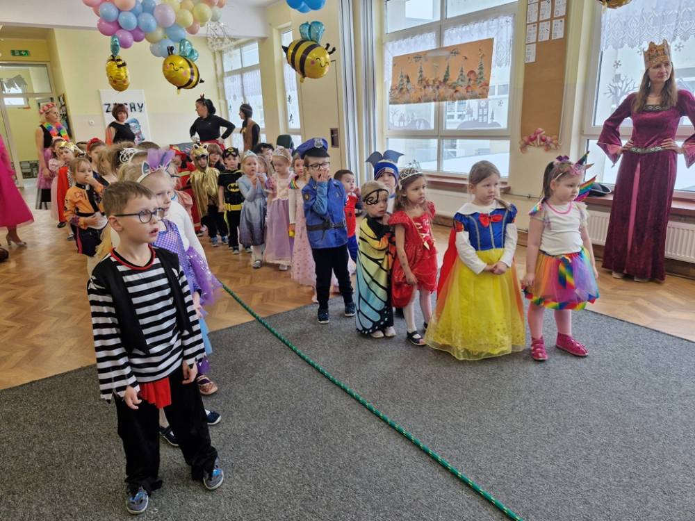 W czwartek, tj. 5 lutego 2026 roku w przedszkolu odbył się bal karnawałowy, na który dzieci czekały z utęsknieniem. Panie dołożyły wszelkich starań, by wystrój przedszkola wprowadził przedszkolaków w radosny nastrój i zachęcał do wspólnych zabaw. Od samego rana do sali przedszkolnej wchodziły dzieci przebrane za postaci z różnych bajek, a motywem przewodnim tegorocznego balu byli bohaterowie bajek Walta Disneya. Można było zobaczyć: Królewnę Śnieżkę, Elsę z Krainy Lodu, Bellę, motyla, piratów itd. Panie animatorki z firmy Animacje Rewelacje zadbały o wspaniałą atmosferę karnawałową i wspólnie bawiły się przy rytmach piosenek dziecięcych i znanych przebojów muzyczych. Zabawę karnawałową uatrakcyjniły wspólne zabawy przy muzyce z elementem współzawodnictwa. Dzieci szukały skarbu, rzucały "nieprawdziwymi" perłami, chwytały bańki mydlane, a także bawiły się z Kubusiem Puchatkiem, który był gościem honorowym balu. Zabawę karnawałową dzieci kontynuowały w sali przedszkolnej, gdzie tańczyły i pląsały przy piosenkach dziecięcych, a także uczestniczyły w zabawach pry muzyce. Był taniec z balonem, taniec na gazecie i zabawa "Nie baw się zapałkami". Podczas przerwy na dzieci czekał słodko-owocowy poczęstunek przygotowany przez mamy. Bal przebierańców przyniół dzieciom wiele radości, a piękne chwile zostały uwieńczone na wspólnych zdjeciach. Dzieci serdecznie dziękują rodzicom za przygotowanie przebrań karnawalowych, a w szczególności mamom: Mai i Krysi za przygotowanie poczęstunku.