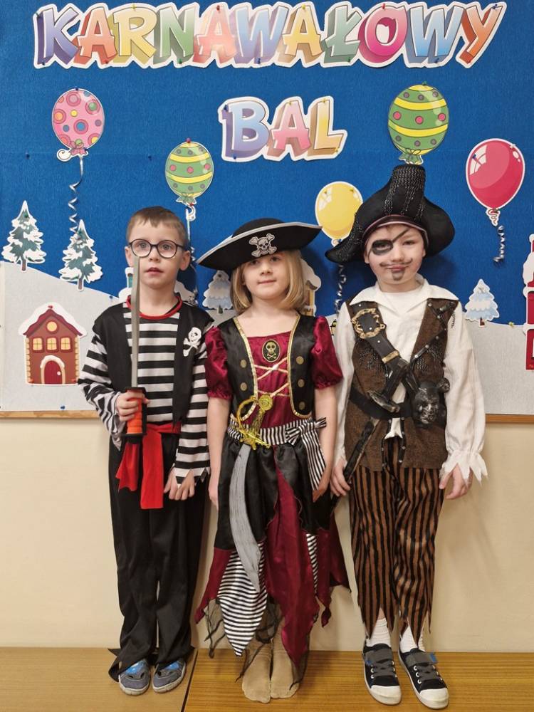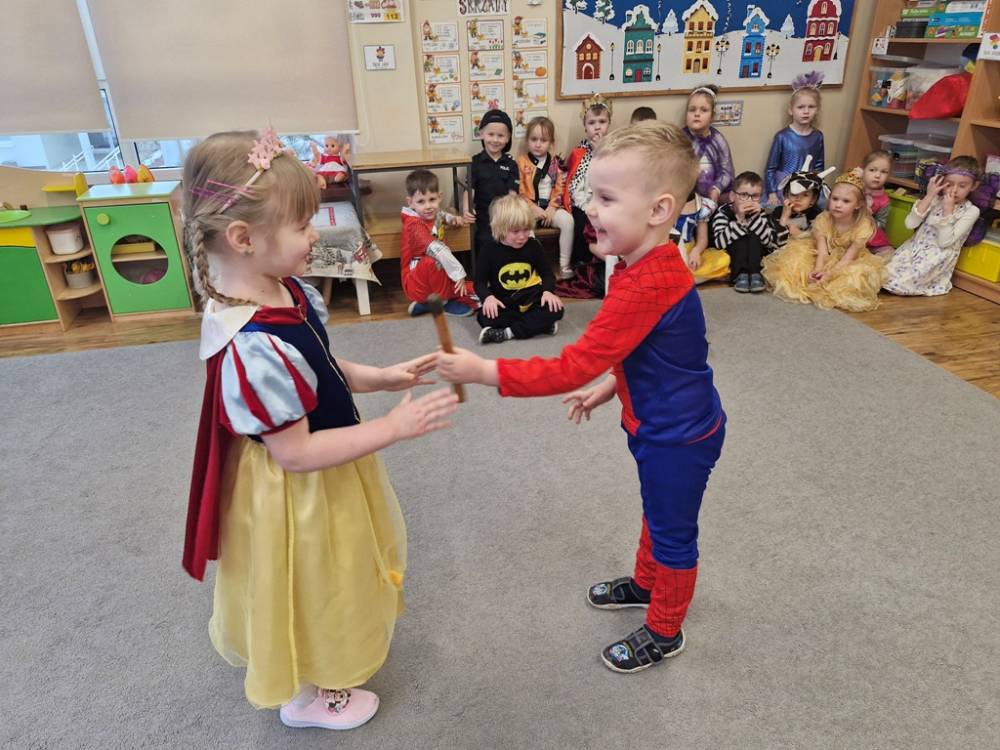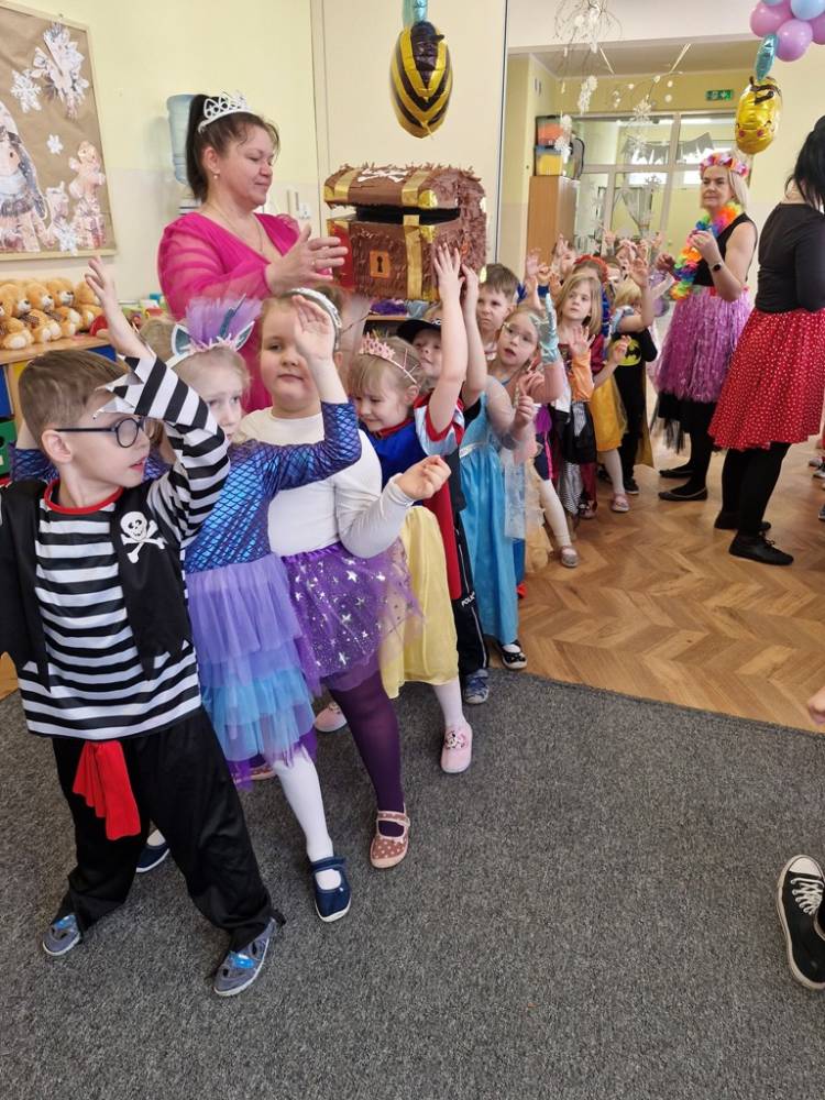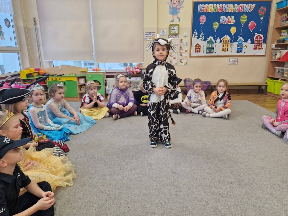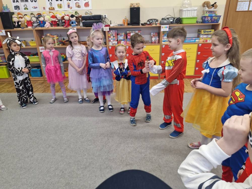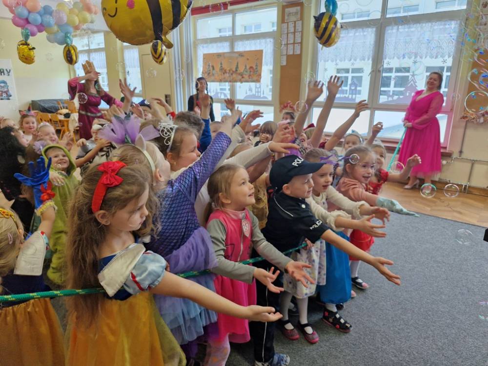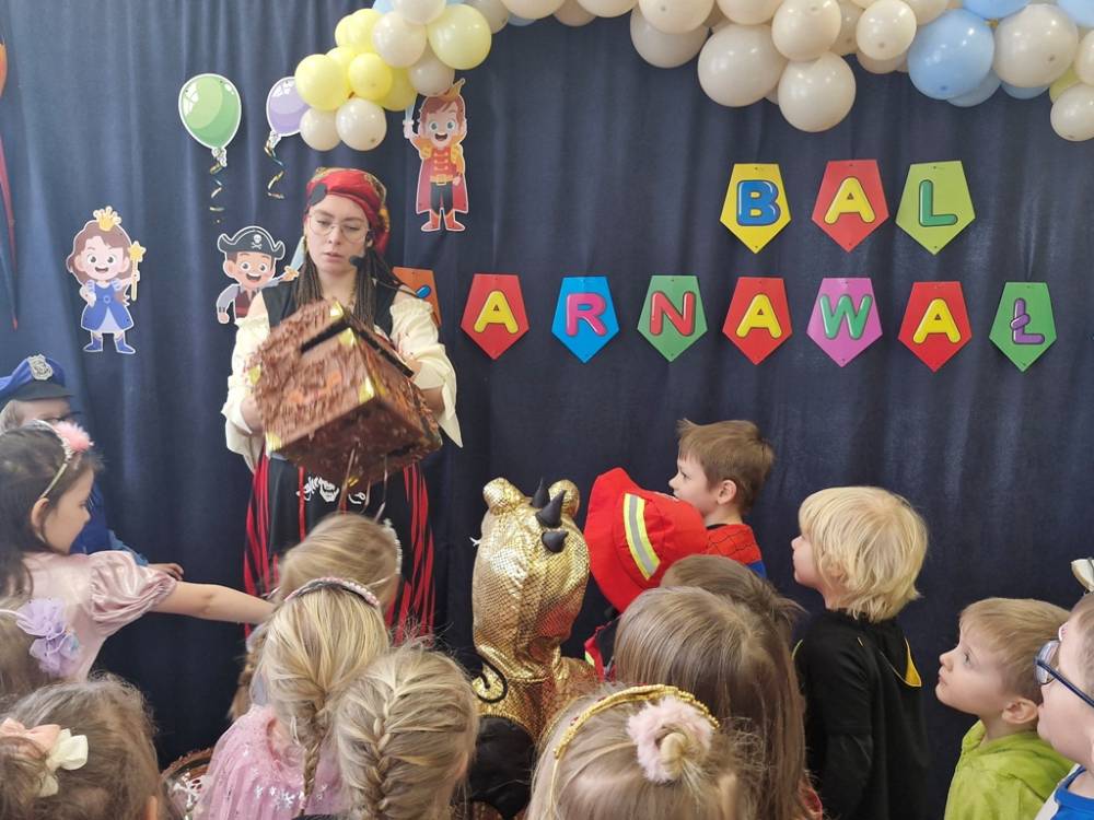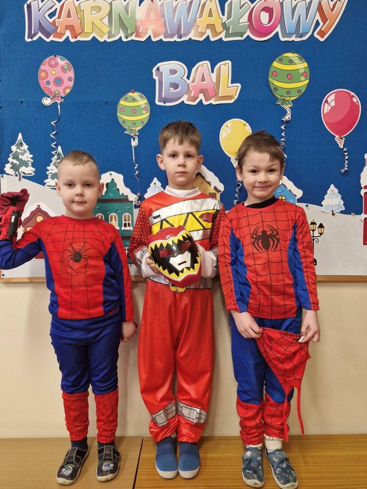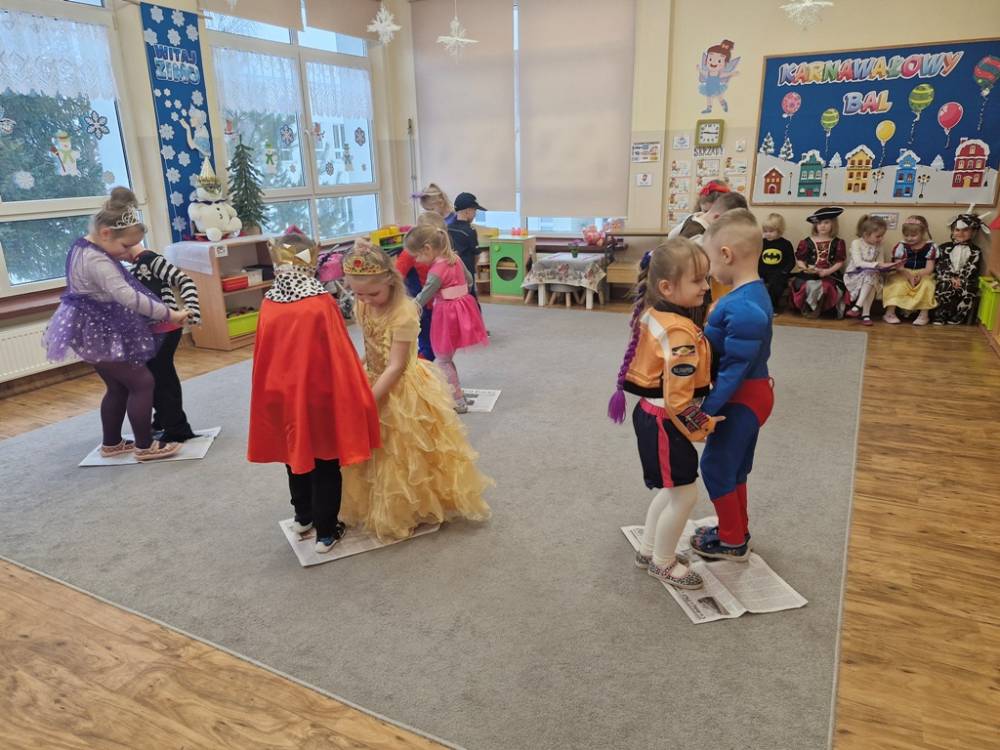 W czwartek, tj. 5 lutego 2026 roku w przedszkolu odbył się bal karnawałowy, na który dzieci czekały z utęsknieniem. Panie dołożyły wszelkich starań, by wystrój przedszkola wprowadził przedszkolaków w radosny nastrój i zachęcał do wspólnych zabaw. Od samego rana do sali przedszkolnej wchodziły dzieci przebrane za postaci z różnych bajek, a motywem przewodnim tegorocznego balu byli bohaterowie bajek Walta Disneya. Można było zobaczyć: Królewnę Śnieżkę, Elsę z Krainy Lodu, Bellę, motyla, piratów itd. Panie animatorki z firmy Animacje Rewelacje zadbały o wspaniałą atmosferę karnawałową i wspólnie bawiły się przy rytmach piosenek dziecięcych i znanych przebojów muzyczych. Zabawę karnawałową uatrakcyjniły wspólne zabawy przy muzyce z elementem współzawodnictwa. Dzieci szukały skarbu, rzucały "nieprawdziwymi" perłami, chwytały bańki mydlane, a także bawiły się z Kubusiem Puchatkiem, który był gościem honorowym balu. Zabawę karnawałową dzieci kontynuowały w sali przedszkolnej, gdzie tańczyły i pląsały przy piosenkach dziecięcych, a także uczestniczyły w zabawach pry muzyce. Był taniec z balonem, taniec na gazecie i zabawa "Nie baw się zapałkami". Podczas przerwy na dzieci czekał słodko-owocowy poczęstunek przygotowany przez mamy. Bal przebierańców przyniół dzieciom wiele radości, a piękne chwile zostały uwieńczone na wspólnych zdjeciach. Dzieci serdecznie dziękują rodzicom za przygotowanie przebrań karnawalowych, a w szczególności mamom: Mai i Krysi za przygotowanie poczęstunku.