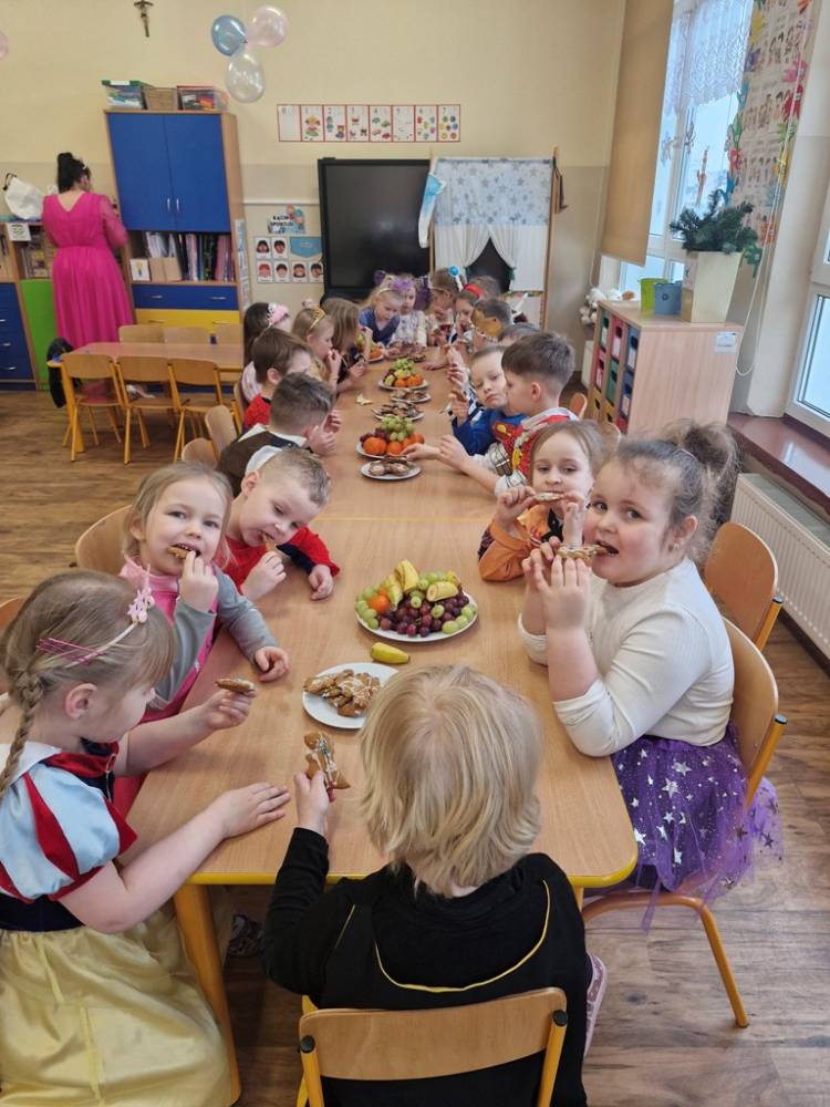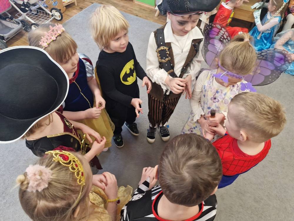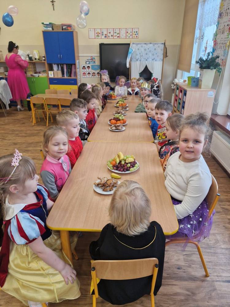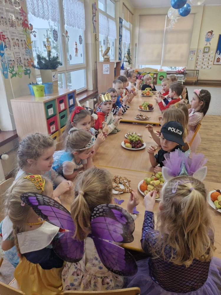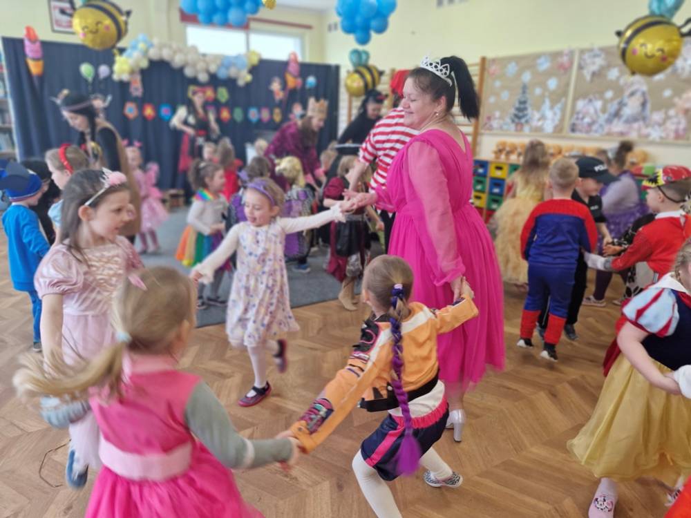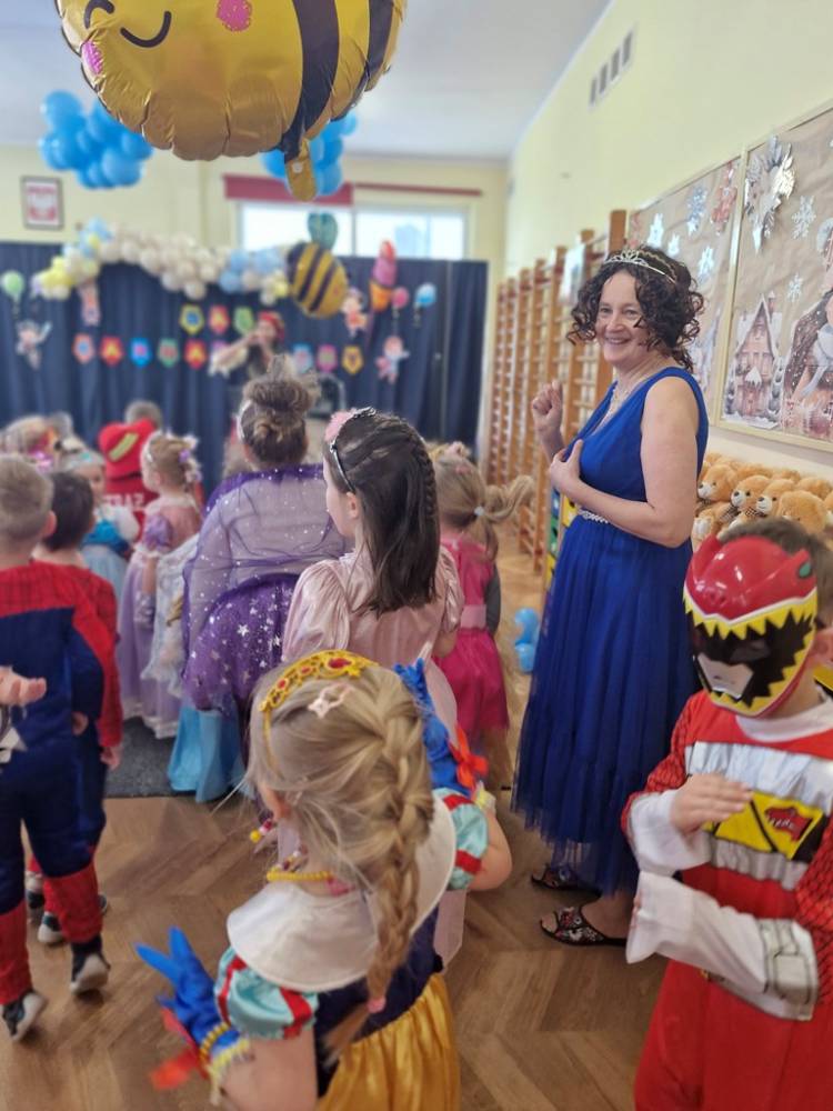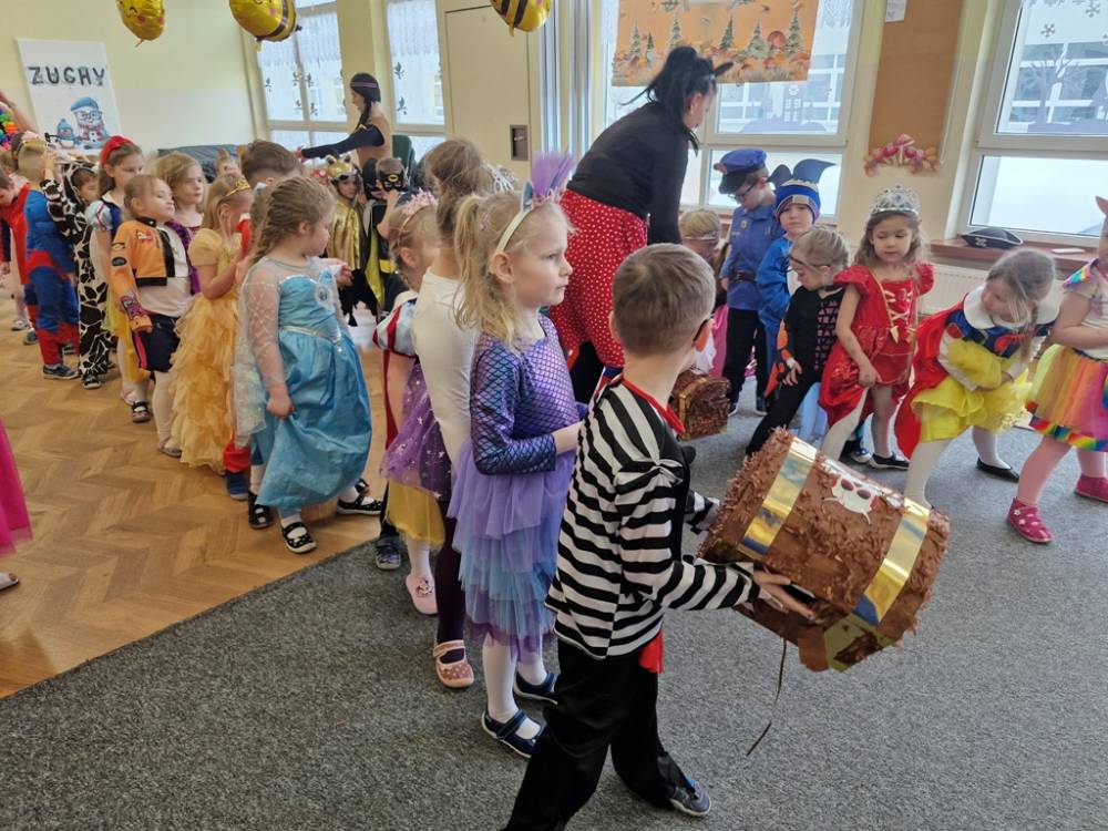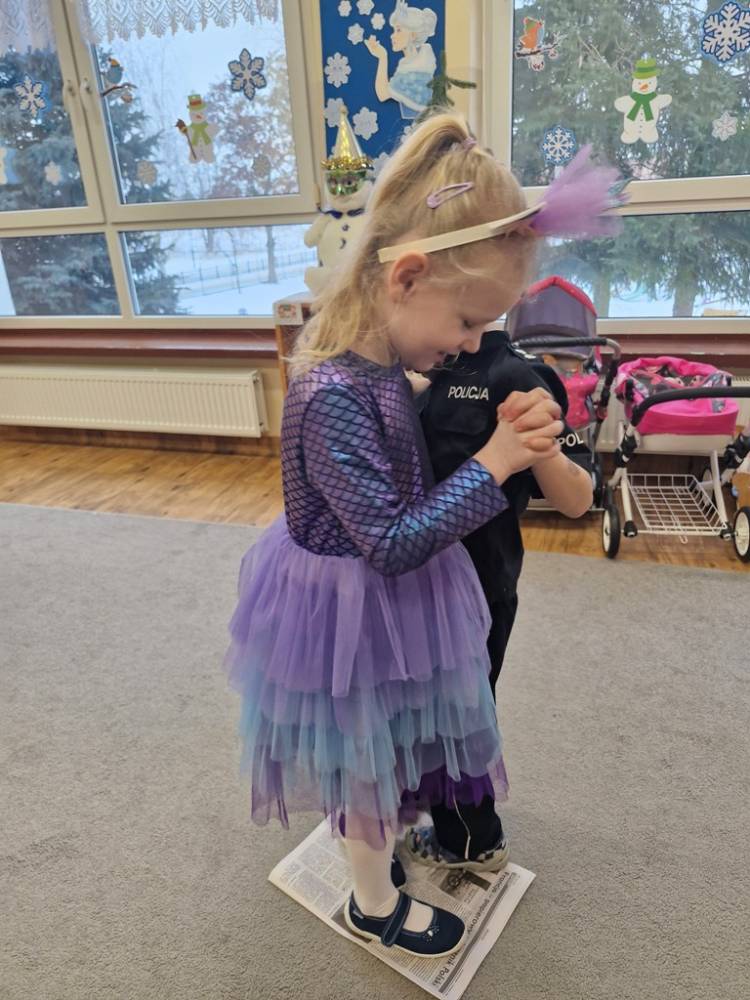 W czwartek, tj. 5 lutego 2026 roku w przedszkolu odbył się bal karnawałowy, na który dzieci czekały z utęsknieniem. Panie dołożyły wszelkich starań, by wystrój przedszkola wprowadził przedszkolaków w radosny nastrój i zachęcał do wspólnych zabaw. Od samego rana do sali przedszkolnej wchodziły dzieci przebrane za postaci z różnych bajek, a motywem przewodnim tegorocznego balu byli bohaterowie bajek Walta Disneya. Można było zobaczyć: Królewnę Śnieżkę, Elsę z Krainy Lodu, Bellę, motyla, piratów itd. Panie animatorki z firmy Animacje Rewelacje zadbały o wspaniałą atmosferę karnawałową i wspólnie bawiły się przy rytmach piosenek dziecięcych i znanych przebojów muzyczych. Zabawę karnawałową uatrakcyjniły wspólne zabawy przy muzyce z elementem współzawodnictwa. Dzieci szukały skarbu, rzucały "nieprawdziwymi" perłami, chwytały bańki mydlane, a także bawiły się z Kubusiem Puchatkiem, który był gościem honorowym balu. Zabawę karnawałową dzieci kontynuowały w sali przedszkolnej, gdzie tańczyły i pląsały przy piosenkach dziecięcych, a także uczestniczyły w zabawach pry muzyce. Był taniec z balonem, taniec na gazecie i zabawa "Nie baw się zapałkami". Podczas przerwy na dzieci czekał słodko-owocowy poczęstunek przygotowany przez mamy. Bal przebierańców przyniół dzieciom wiele radości, a piękne chwile zostały uwieńczone na wspólnych zdjeciach. Dzieci serdecznie dziękują rodzicom za przygotowanie przebrań karnawalowych, a w szczególności mamom: Mai i Krysi za przygotowanie poczęstunku.