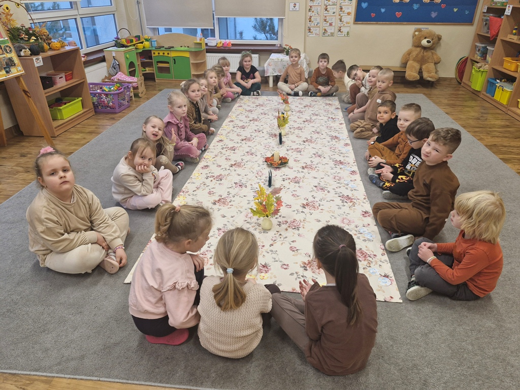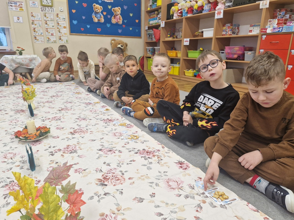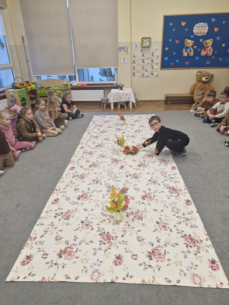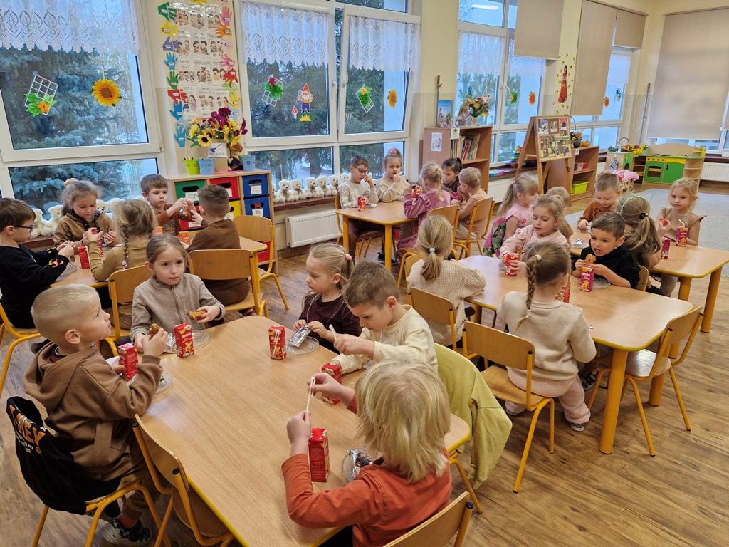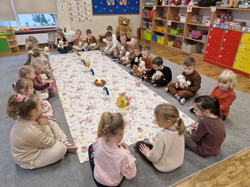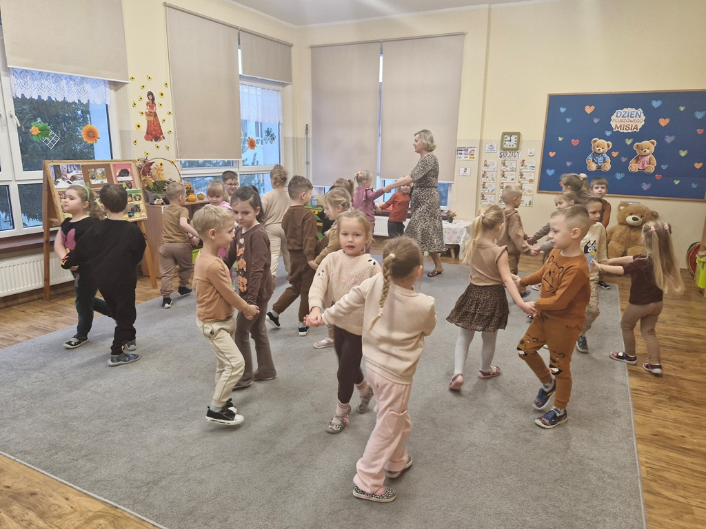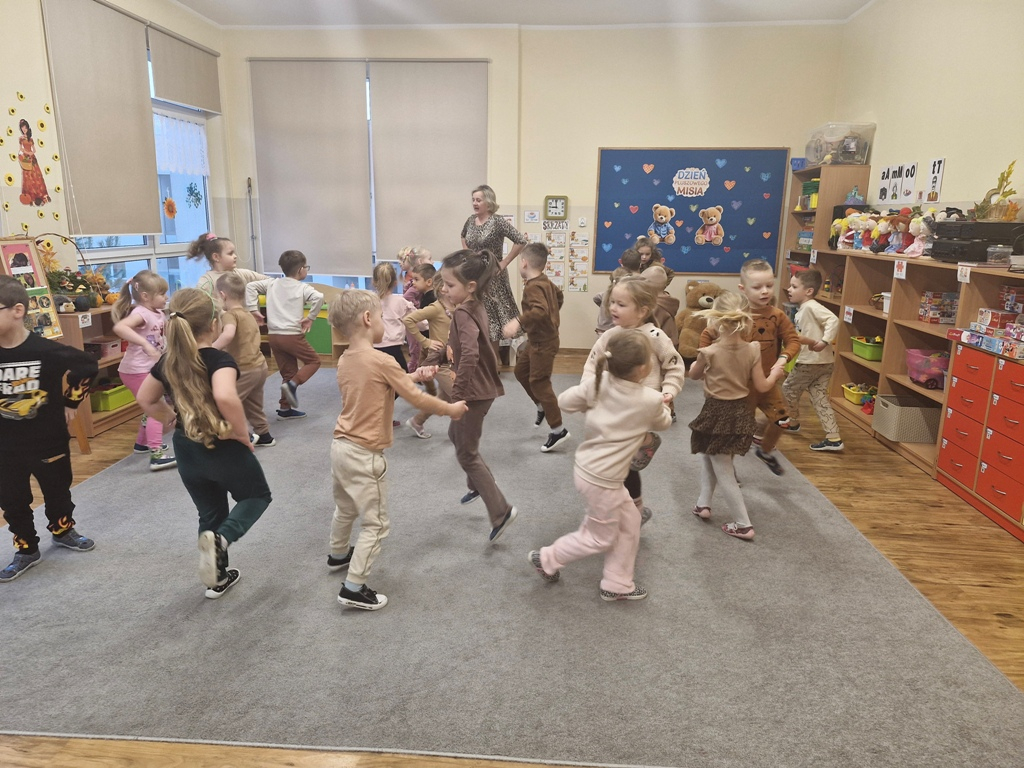 W dniu 25 listopada dzieci z grupy "Skrzaty" obchodziły Dzień Pluszowego Misia. Przedszkolakom w tym dniu towarzyszył miś, który już trzeci rok jest z nimi w przedszkolu. Z okazji święta misiów dzieci zorganizowały dla solenizantów przyjęcie urodzinowe. Każdy dziecko przygotowało nakrycie dla swojego misia, rozkładając "papierowe" talerzyki, sztućce, a na koniec małe ciasteczka. Po wspólnym zaśpiewaniu 'Sto lat" dzieci skosztowały urodzinowych ciasteczek i zadbały o to, aby brzuszki misiów były pełne. Nie zabrakło również zabaw z misiami: zabawy tanecznej i ruchowej. Poza tym dzieci wykonały piękne prace plastyczne -"Misie", które przyozdobiły przedszkole. Na zakończenie tego ważnego wydarzenia przedszkolaki ze swoimi misiami pozowały do wspólnego zdjęcia na tle specjalnie przygotowanej dekoracji. "Skrzaty" serdecznie dziękują mamie bliźniaków (Liwii i leona) za pomoc w organizacji uroczystości w grupie.