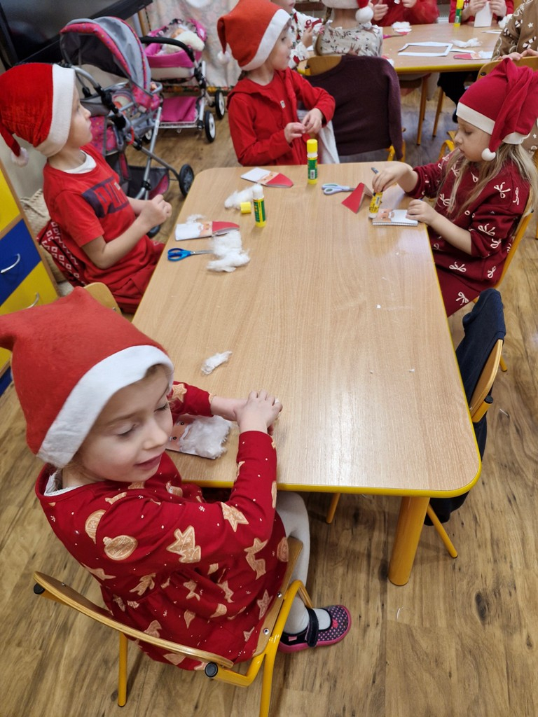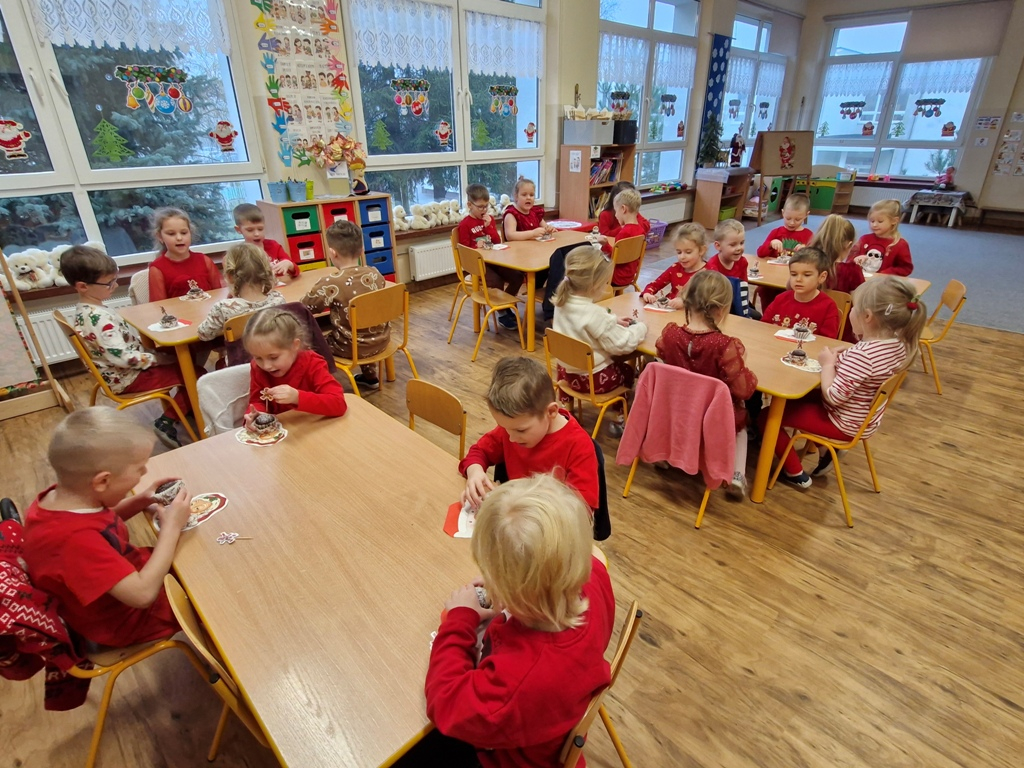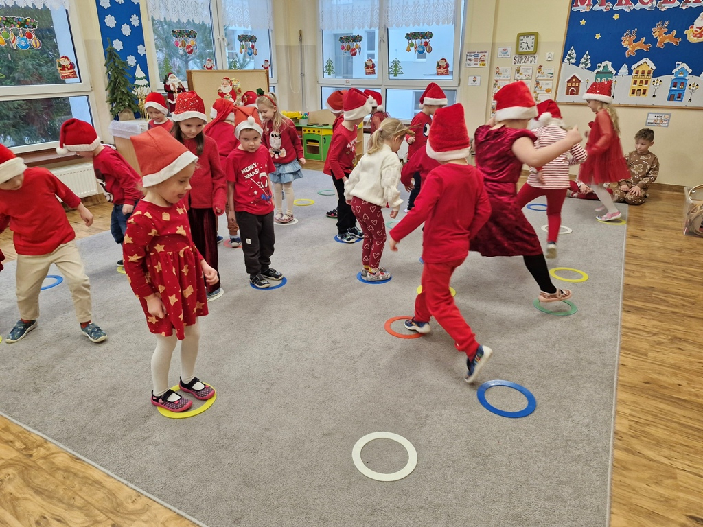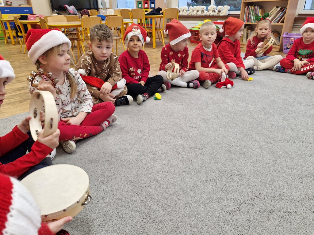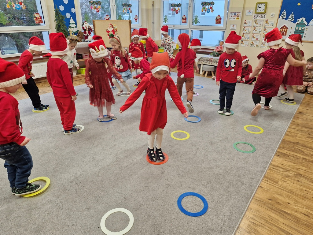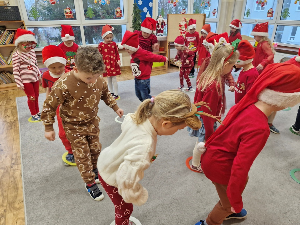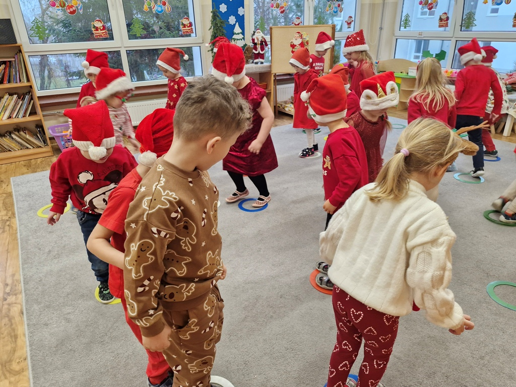 Mikołajki to święto długo oczekiwane przez wszystkie dzieci. W dniu 5 grudnia 2025 roku dzieci czekając na Mikołaja, uczestniczyły w różnych działaniach edukacyjnych. W czasie zajęć "Skrzaty" opisywały słownie wygląd postaci Mikołaja, opowiadały o swoich wymarzonych prezentach, a także usprawniały narządy artykulacyjne, słuchając opowiadania logopedycznego "Worek prezentów". Zanim Mikołaj zawitał do sali "Skrzatów" dzieci ilustrowały dźwiękami instrumentów muzycznych opowiadanie "Przyjazd Mikołaja", a także wchodziły w rolę Mikołaja, bawiąc się przy piosence Mikołaj. Wspólna zabawa ucichła, gdy z oddali dobiegł dźwięk dzwoneczka zwiastujący niecodziennego gościa. Odwiedziny Mikołaja sprawiły dzieciom wiele radosci. Po wspólnych rozmowach był czas na podziękowanie za upominki i wykonanie pamiątkowego zdjęcia. W tym dniu dzieci również uczestniczyły w zabawach ruchowych przy muzyce, a także wykonały piękne prace palstyczne przedstawiajace postać Mikołaja, które zostały zaprezentowane na gazetce. Dzieci z grupy "Skrzaty" serdecznie dziękują mamie Jagny za pomoc w organizacji święta.