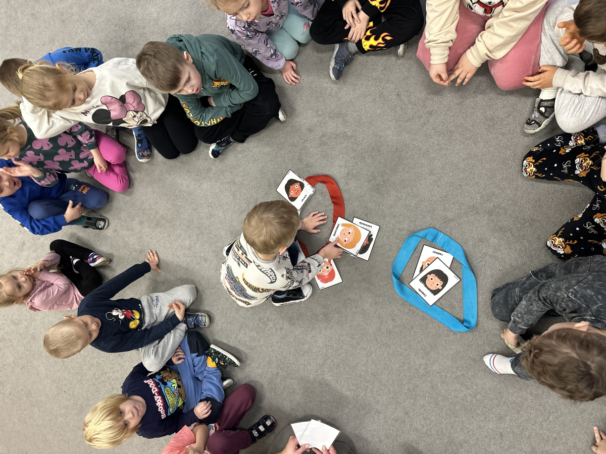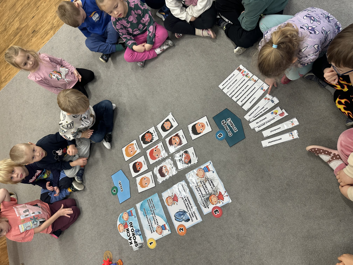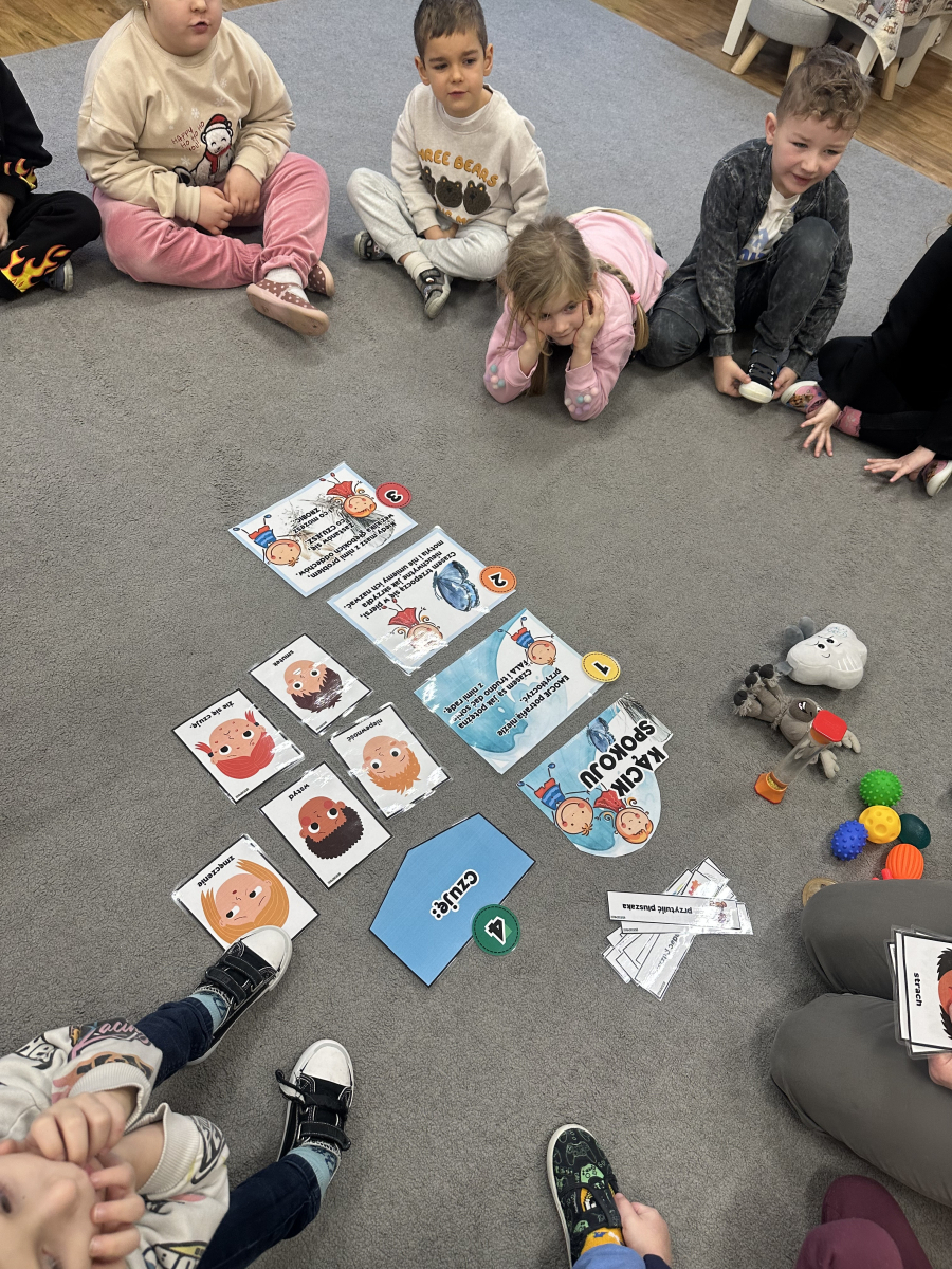Wspólnie grano w gry memory o emocjach, rozmawiano o tym, jak rozpoznawać uczucia swoje i innych, a także jak sobie radzić, gdy pojawia się złość, smutek czy strach.