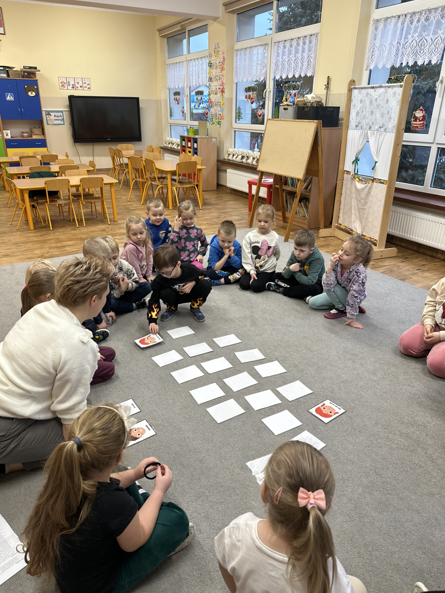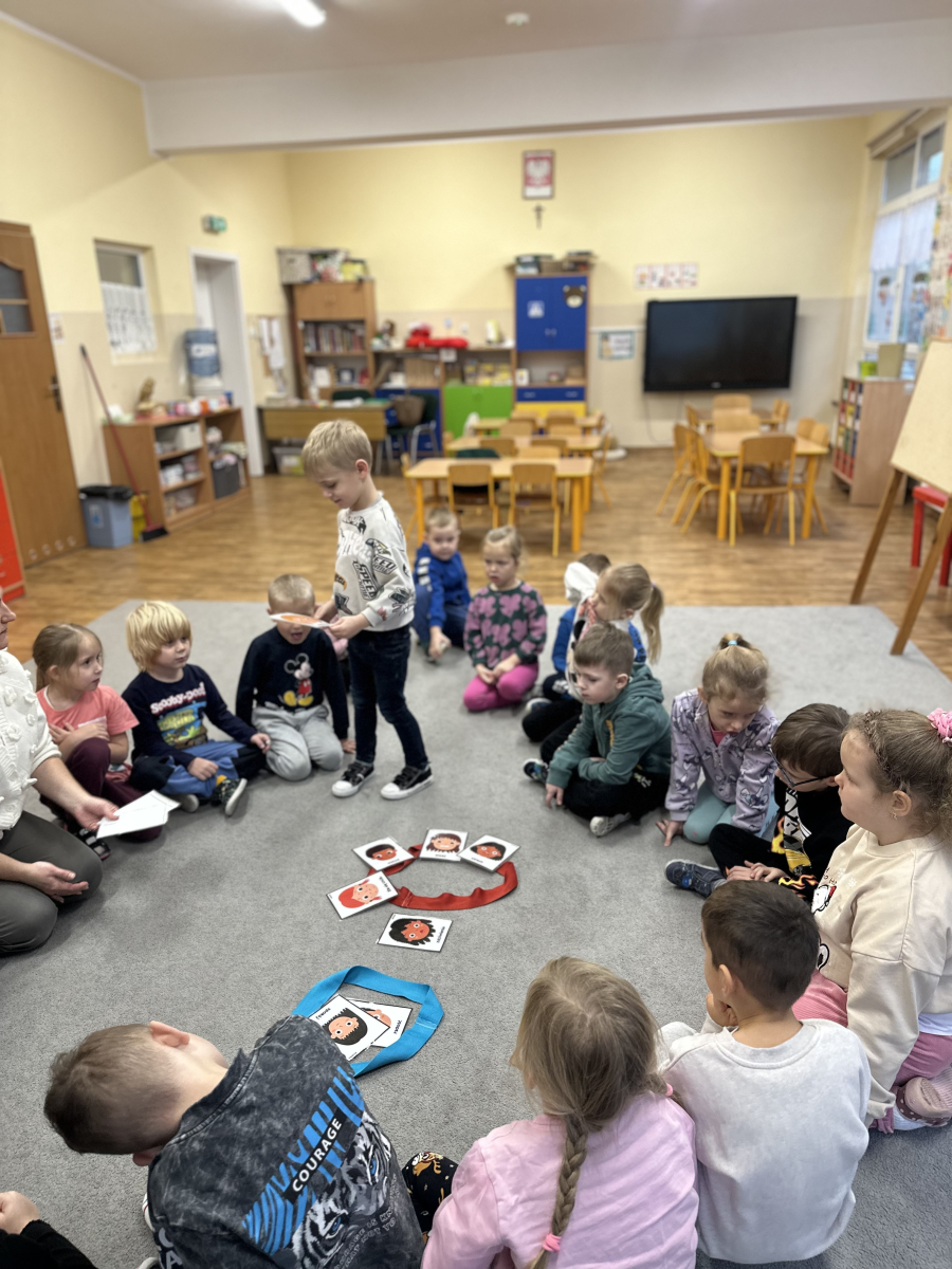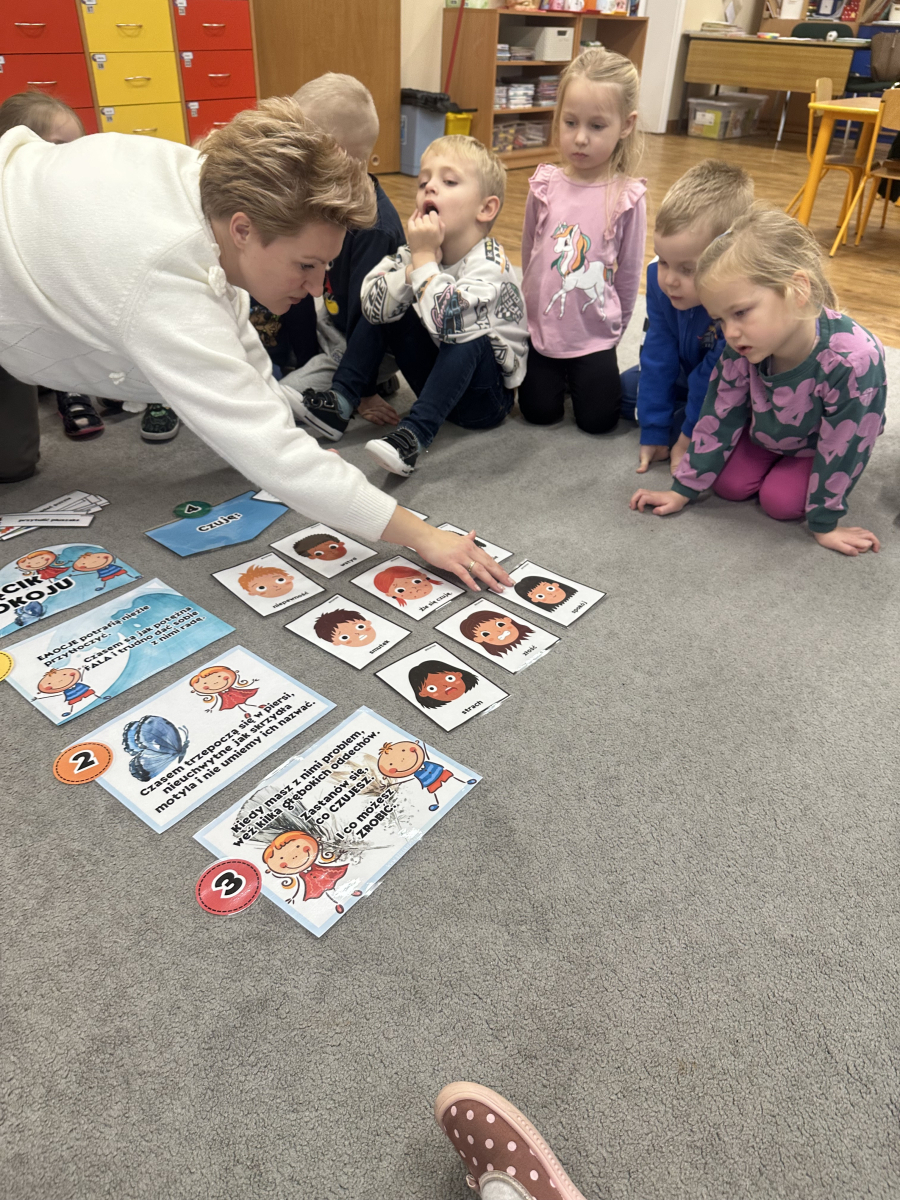 Wspólnie grano w gry memory o emocjach, rozmawiano o tym, jak rozpoznawać uczucia swoje i innych, a także jak sobie radzić, gdy pojawia się złość, smutek czy strach.