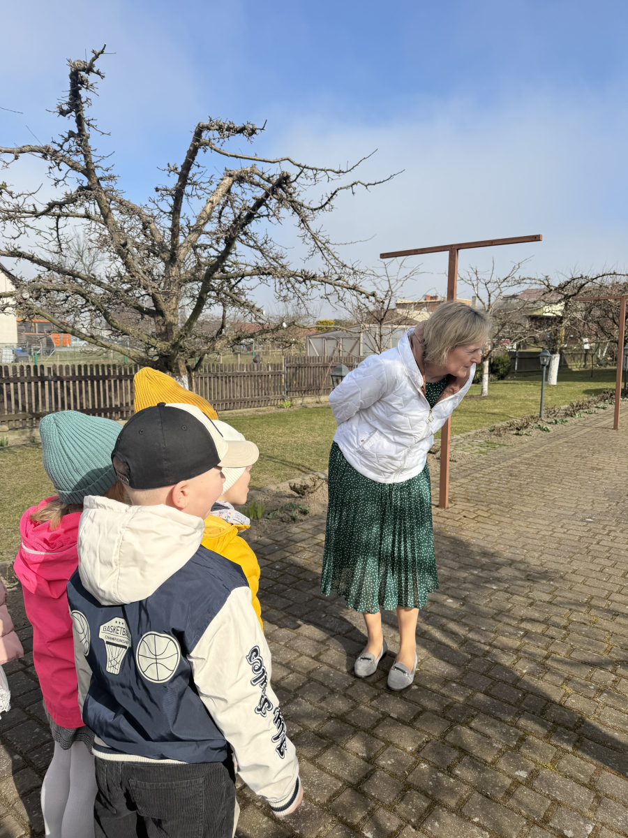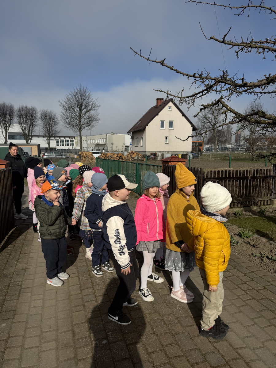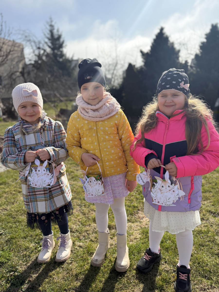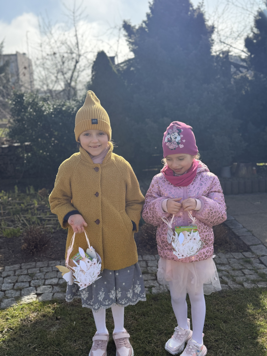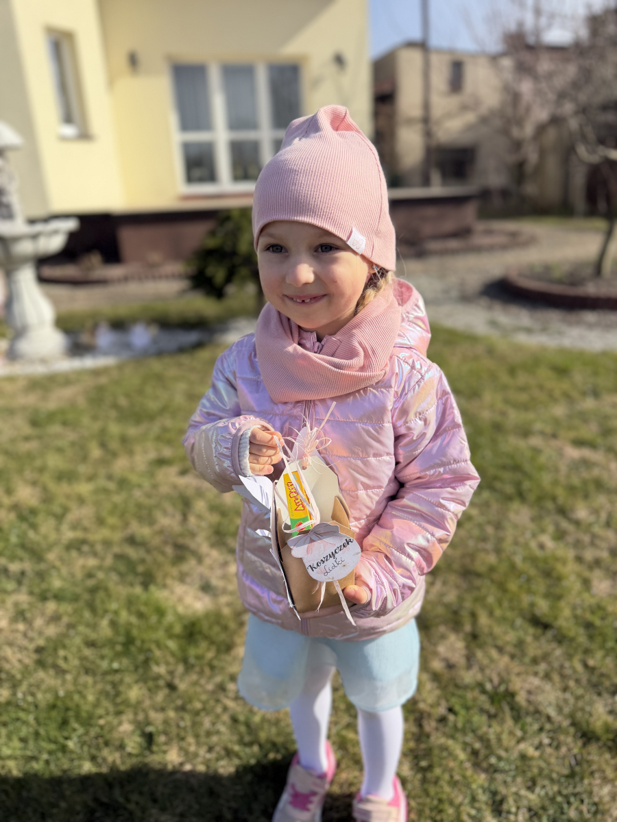Po śniadaniu przedszkolaki wyruszyły na wesołe poszukiwanie śladów Wielkanocnego Zajączka. Tropy prowadziły je do ogródka Pani Marysi, gdzie czekały przygotowane dla dzieci prezenty. Radość, ekscytacja i uśmiechy towarzyszyły każdemu krokowi, a wspólna zabawa pokazała, jak wielką frajdę sprawia odkrywanie świątecznych niespodzianek.
