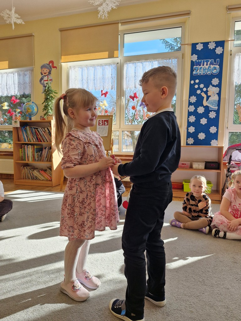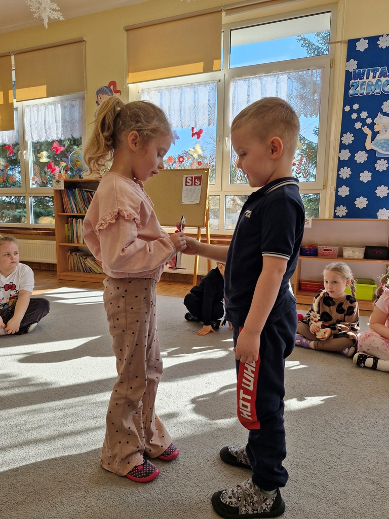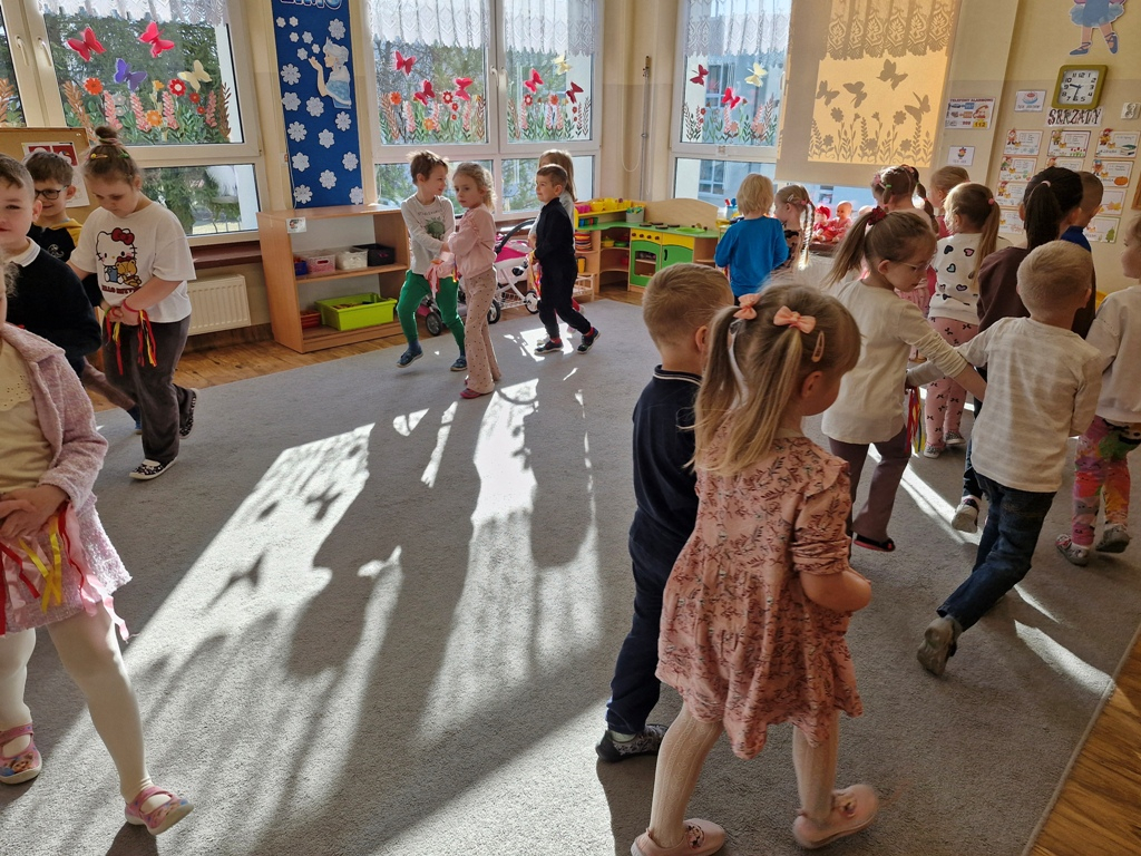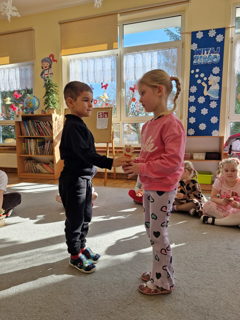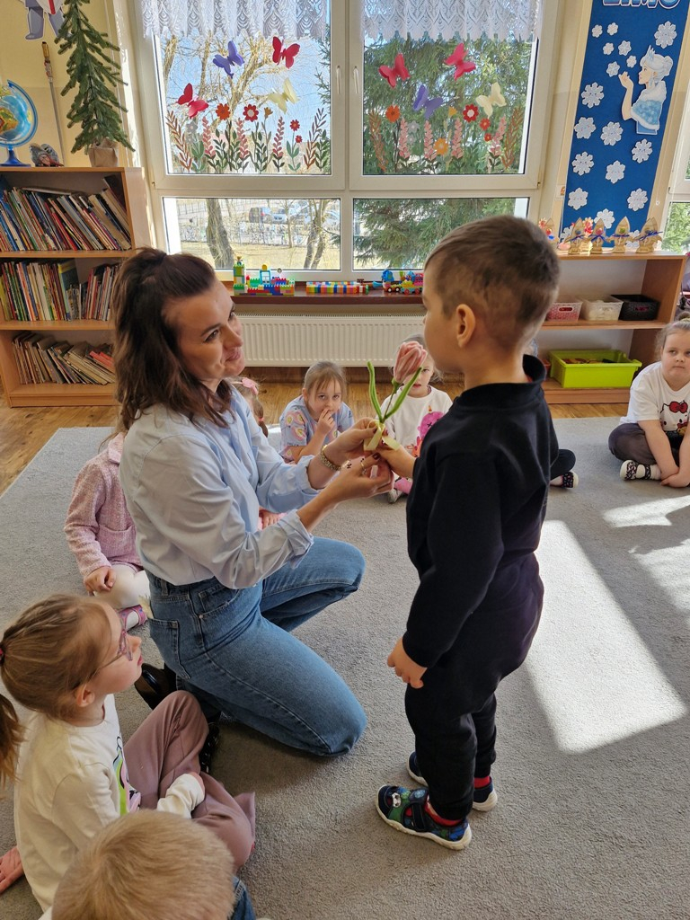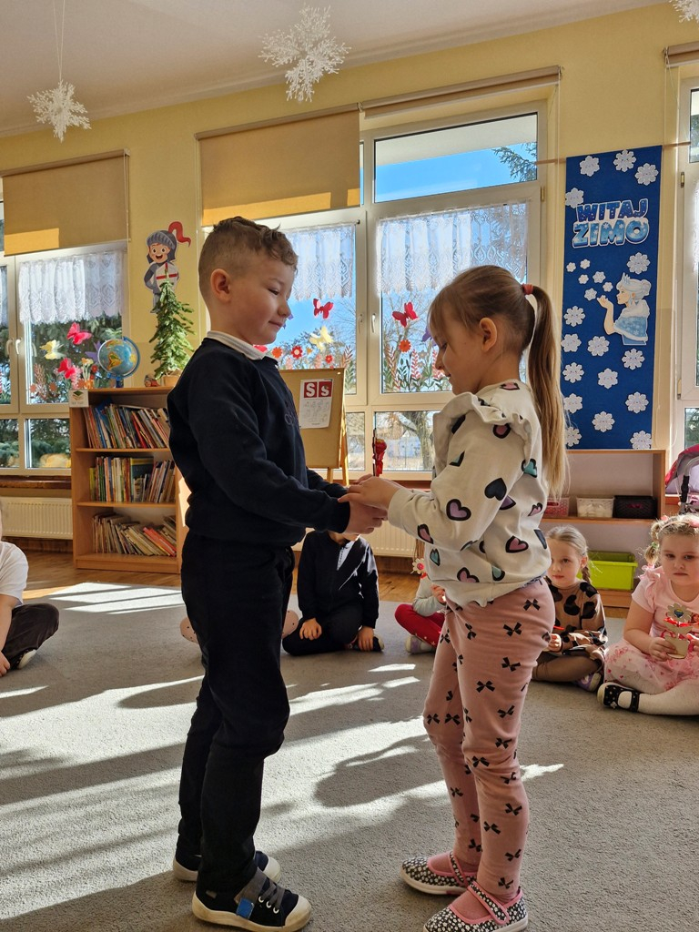 8 marca to wyjątkowy dzień w roku, gdyż swoje święto obchodzą wszystkie kobiety, zarówno te duże, jak i małe. W tym szczególnym dniu dzieci bawiły się przy piosence Słoneczne życzenia, wcielając się w role solistów, a także bawiły się przy muzyce. Wszyscy chłopcy skladali dziewczynkom życzenia, wręczając im kwiatki wykonane z drewna, a kolega Szymon podarował każdej dziewczynce tulipana wykonanego z drucika kreatywnego. Radość i uśmiech towarzyszyły dziewczynkom w tym świątecznym dniu. Dziewczynki równiez obdarowały chłopców upominkami, wręczajac im drewniane rakiety z lizakami z okazj Dnia Mężczyzny przypadajacego dwa dni później. Przedszkolaki pamiętały również o swoich mamach, przygotowując na zajeciach plastycznych niespodziankę - obrazek na ścianę z okazj Dnia Kobiet. Panie i dziewczynki serdecznie dziękują chłopcom za życzenia, kwiaty i promienny uśmiech. Dziękujemy również Pani Kasi - mamie Julki za przygotowanie upominków dla dzieci.