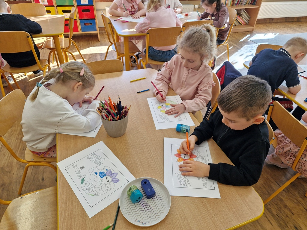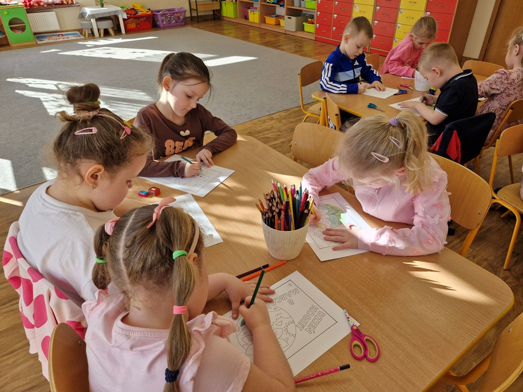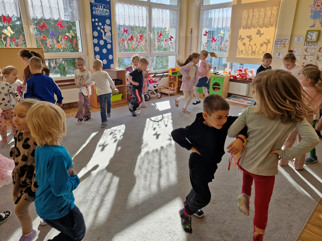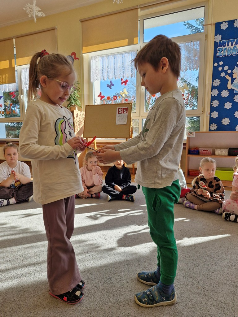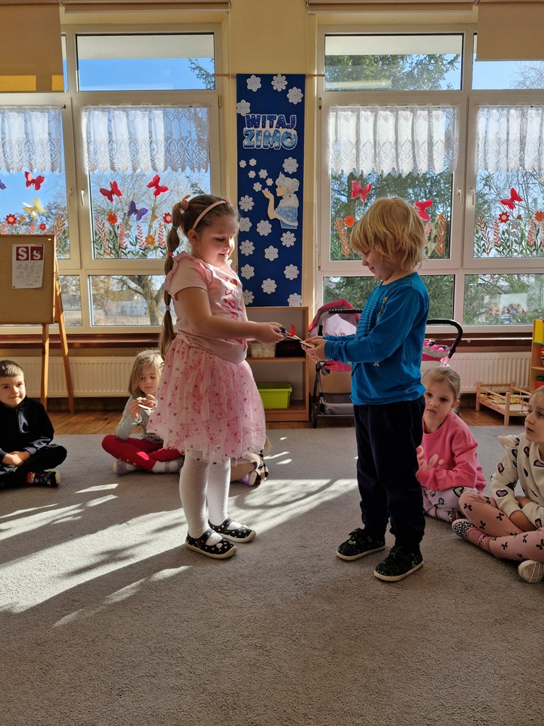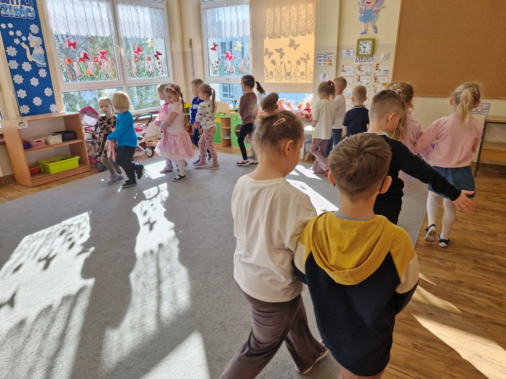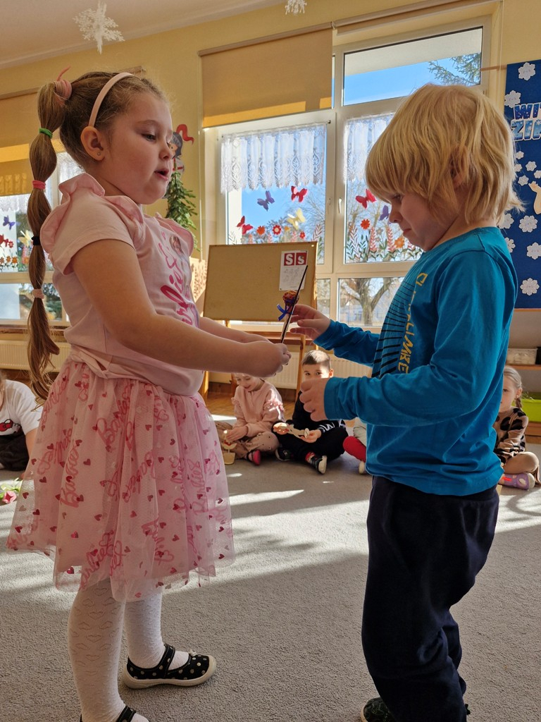 8 marca to wyjątkowy dzień w roku, gdyż swoje święto obchodzą wszystkie kobiety, zarówno te duże, jak i małe. W tym szczególnym dniu dzieci bawiły się przy piosence Słoneczne życzenia, wcielając się w role solistów, a także bawiły się przy muzyce. Wszyscy chłopcy skladali dziewczynkom życzenia, wręczając im kwiatki wykonane z drewna, a kolega Szymon podarował każdej dziewczynce tulipana wykonanego z drucika kreatywnego. Radość i uśmiech towarzyszyły dziewczynkom w tym świątecznym dniu. Dziewczynki równiez obdarowały chłopców upominkami, wręczajac im drewniane rakiety z lizakami z okazj Dnia Mężczyzny przypadajacego dwa dni później. Przedszkolaki pamiętały również o swoich mamach, przygotowując na zajeciach plastycznych niespodziankę - obrazek na ścianę z okazj Dnia Kobiet. Panie i dziewczynki serdecznie dziękują chłopcom za życzenia, kwiaty i promienny uśmiech. Dziękujemy również Pani Kasi - mamie Julki za przygotowanie upominków dla dzieci.