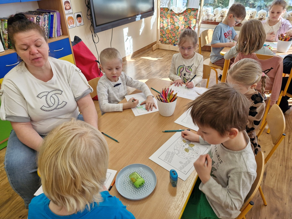 Złote słońce rano wstało i tak myśli sobie: Jeszcze chłodno, kwiatów mało, a dziś Święto Kobiet - obchody w grupie Dnia Kobiet