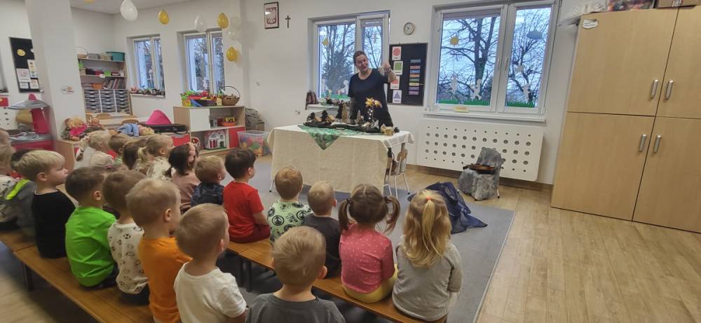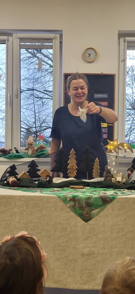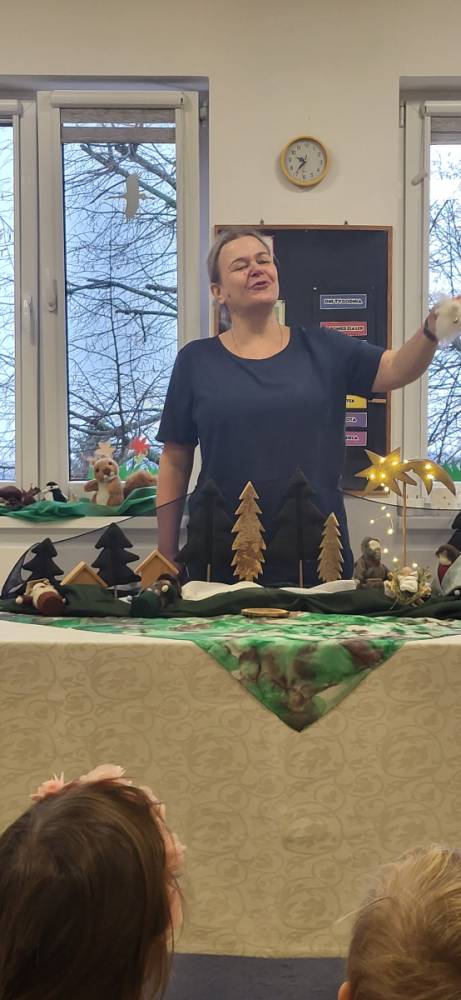 Dzisiaj (17.11.), w naszej placówce, odbył się wyjątkowy teatrzyk stolikowy „Dzwonki Bożego Narodzenia”.