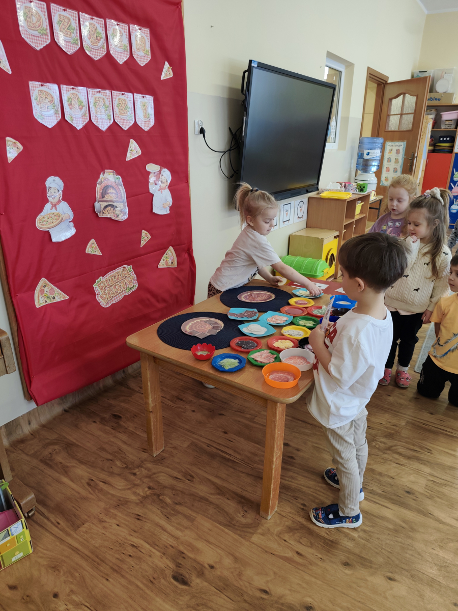 9 lutego obchodziliśmy dzień pizzy, stworzyliśmy swoją pizzerie, w której uczyliśmy się składać zamówienia, używać zwrotów grzecznościowych, przeliczać składniki. Wiele zabawy i nauki.