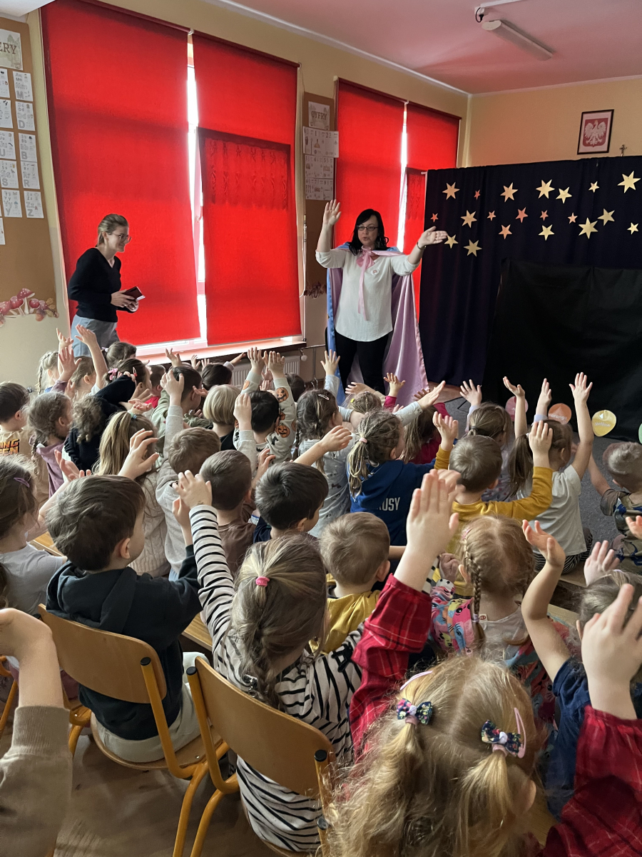 W lutym dzieci obejrzały przedstawienie teatralne w języku angielskim "O małej gwiazdeczce, która zgubiła blask", które zaprezentowały nauczycielki z naszego przedszkola.
