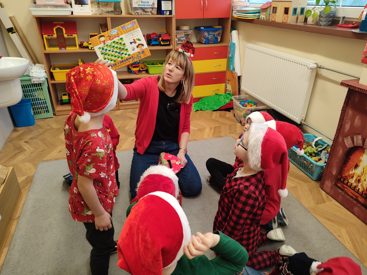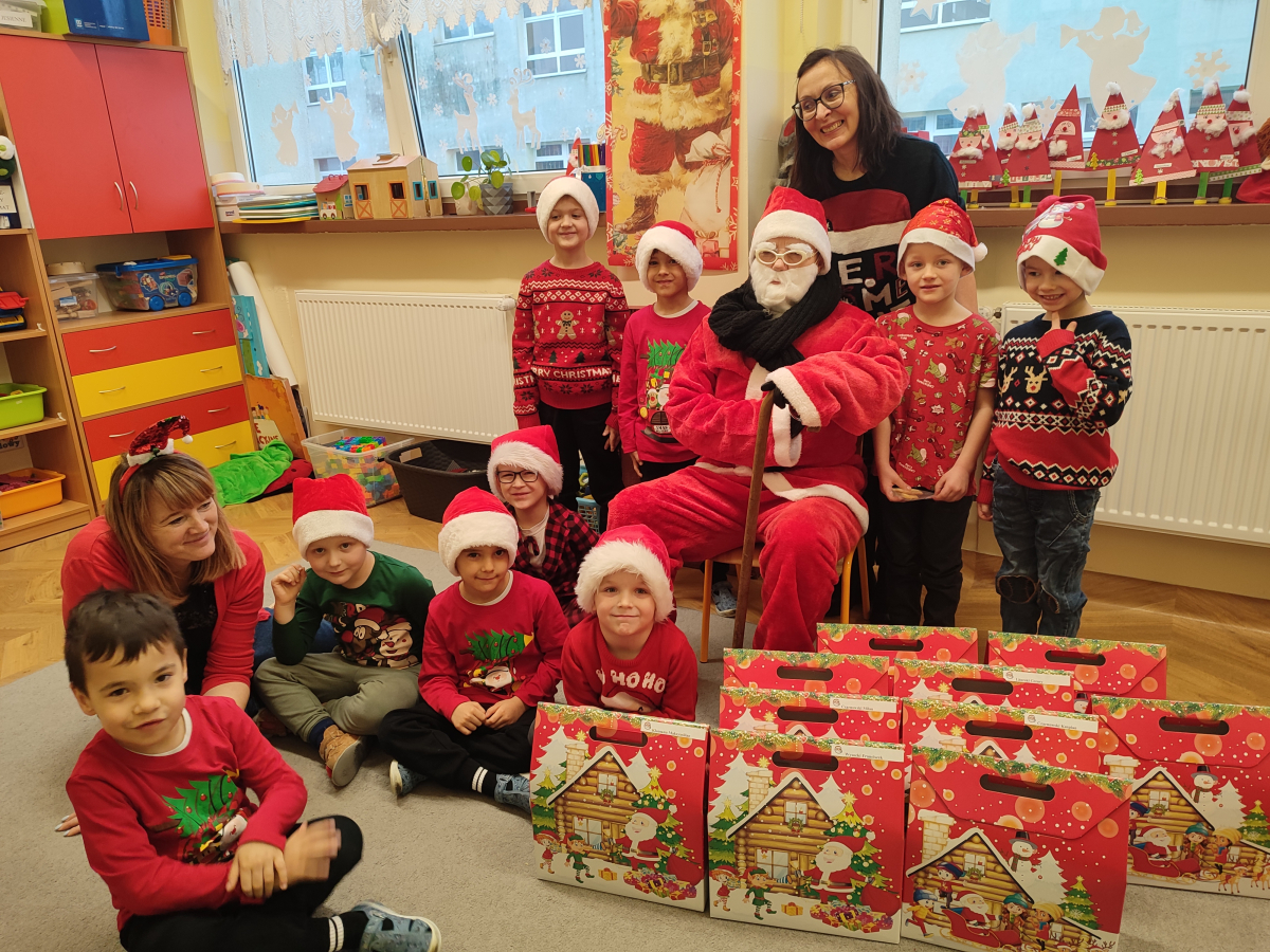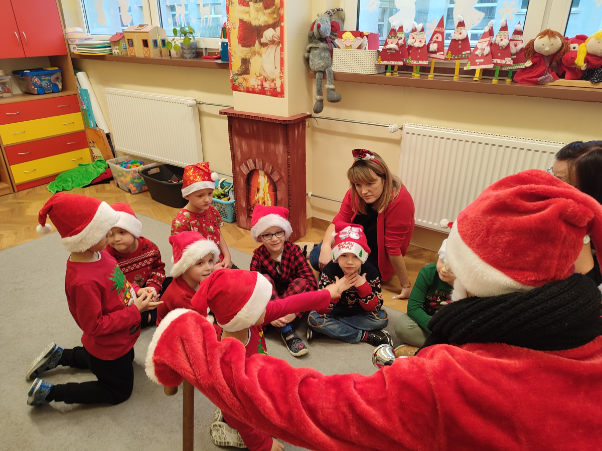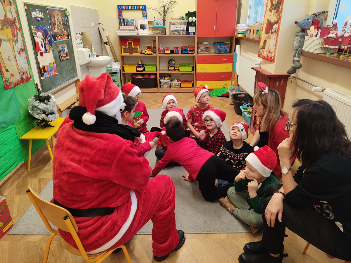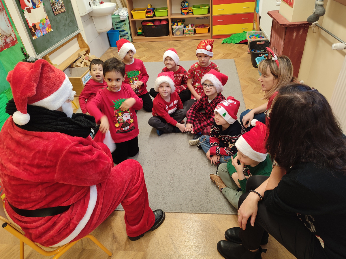 Na ten dzień czekały wszystkie dzieci z naszego przedszkola. Oczekiwany gość – Mikołaj zawitał do sal przedszkolnych tuż po śniadaniu. Ileż radości dostarczył dzieciom! Uprzejma rozmowa z Mikołajem i wspólne śpiewanie piosenek zakończone zostało wręczeniem ogromnych prezentów. Warto być grzecznym cały rok! Dziękujemy ! Do zobaczenia Mikołaju!