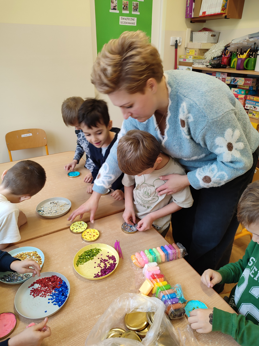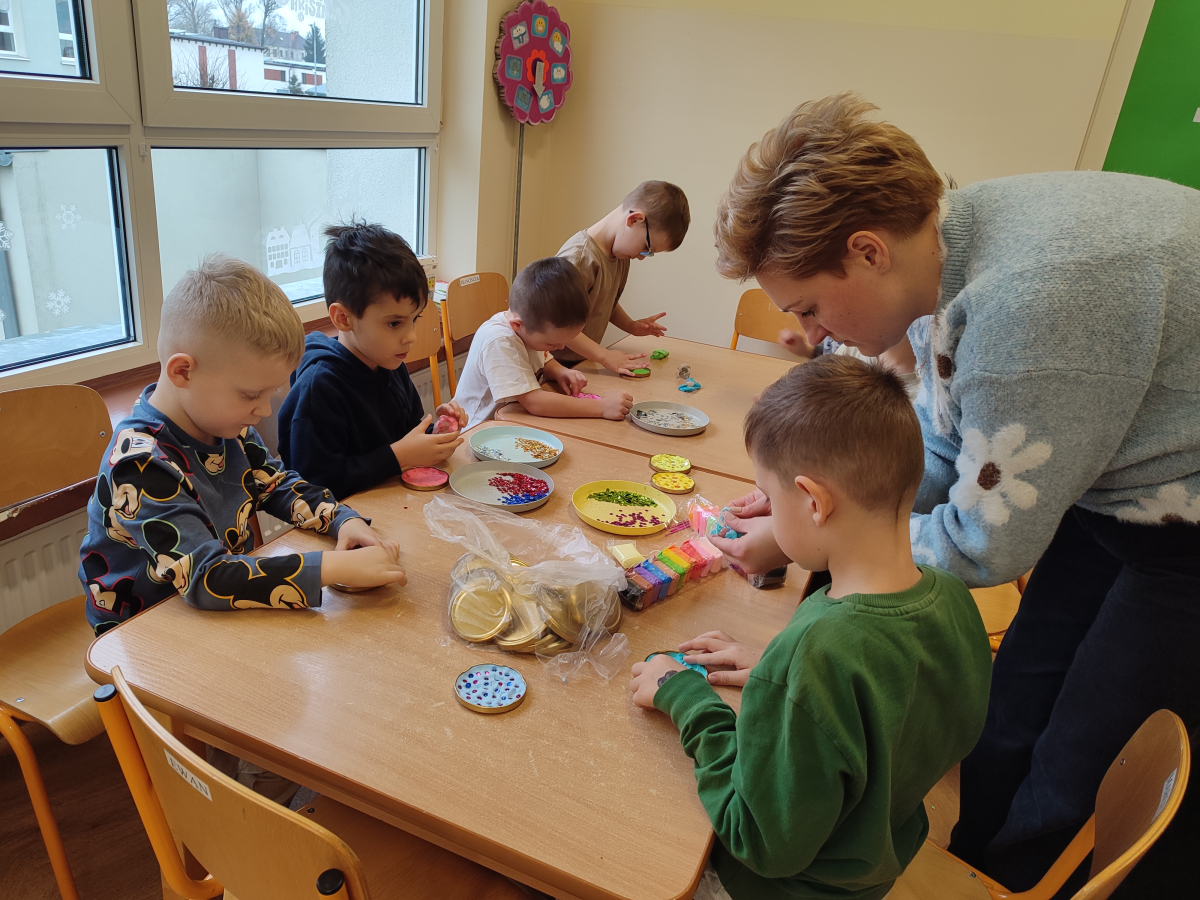 Któż z nas nie lubi świąt? Zuchy odliczały każdy dzień do Wigilii. By umilić sobie czas, brały udział w różnorodnych zajęciach. Do tych aktywności zaprosiły mamy i panią Alicję – pedagoga specjalnego. Z panią Alicją przygotowywały kartki świąteczne dla Gości ze Środowiskowego Domu Samopomocy. Z mamą Marcela piekły świąteczne ciasteczka, natomiast z mamą Stasia tworzyły przepiękne, kolorowe bombki. Serdecznie dziękujemy za wspólnie spędzony czas!